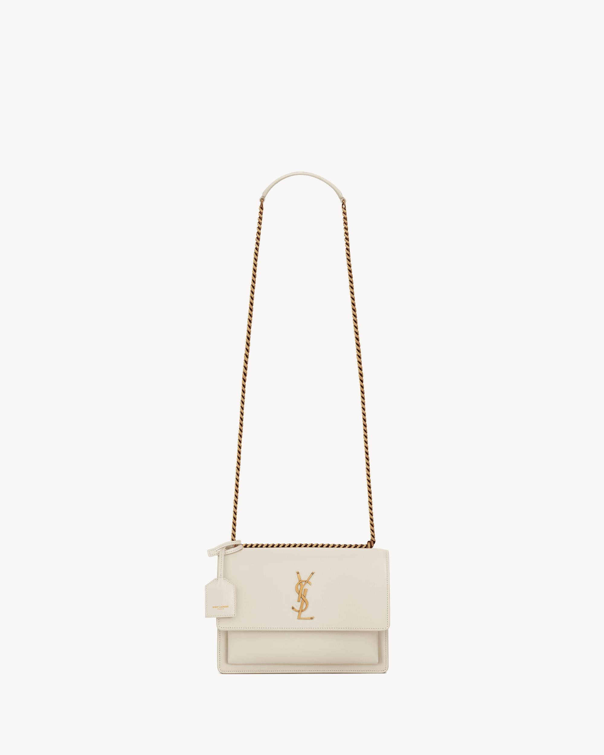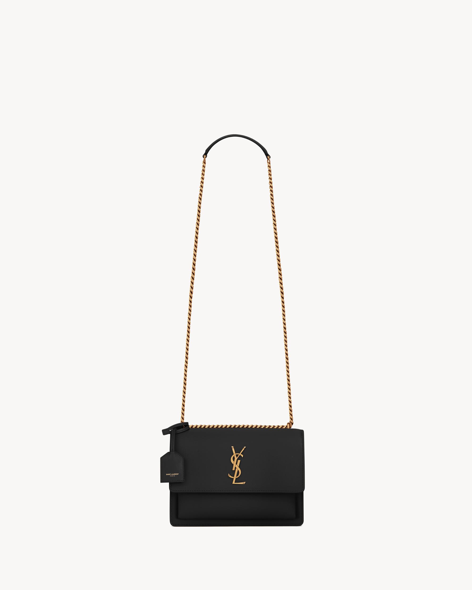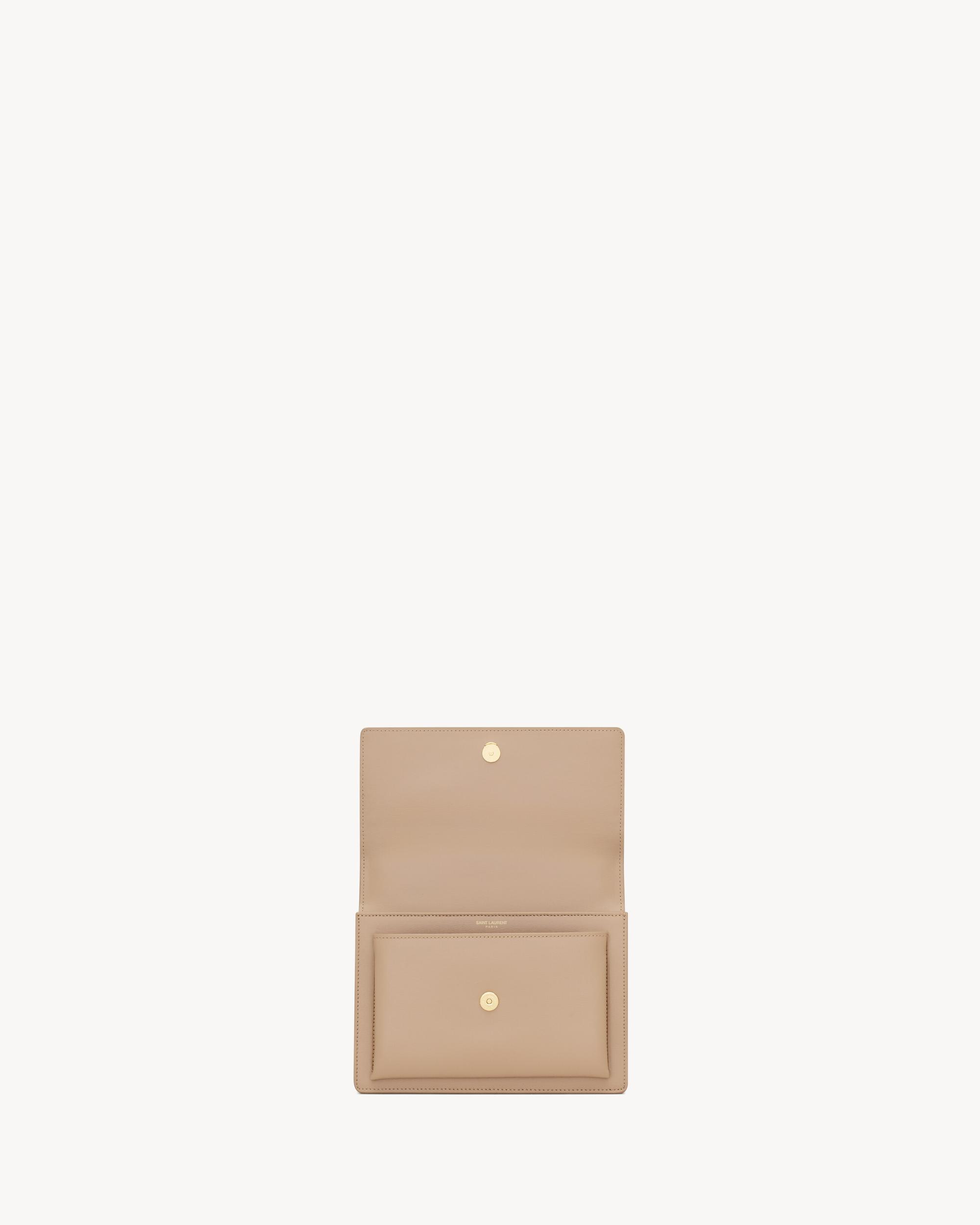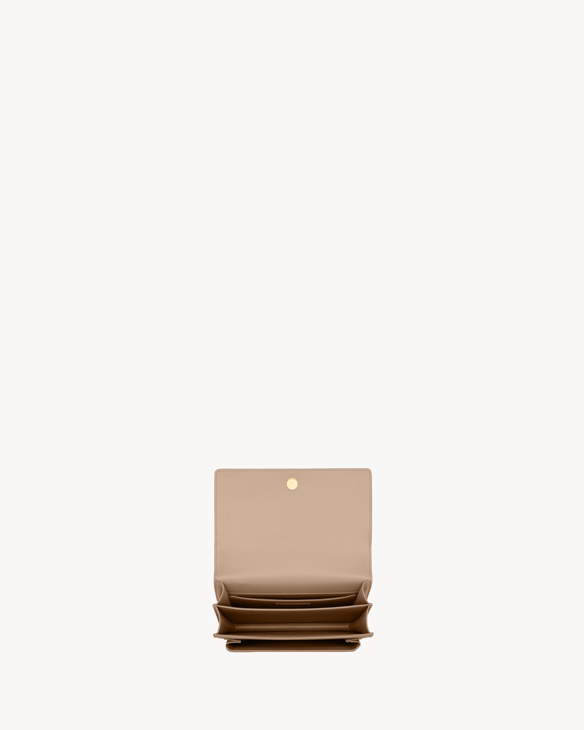 LEATHER-LINED FLAP BAG WITH THE CASSANDRE AND DETACHABLE LEATHER CHARM. FUNCTIONAL AND STRUCTURED WITH ACCORDION SIDES, IT FEATURES A DOUBLE COMPARTMENT, A FRONT POCKET AND A LARGE BACK SLOT POCKET.SLIDING CHAIN CAN BE WORN ON THE SHOULDER OR CROSSBODY.
