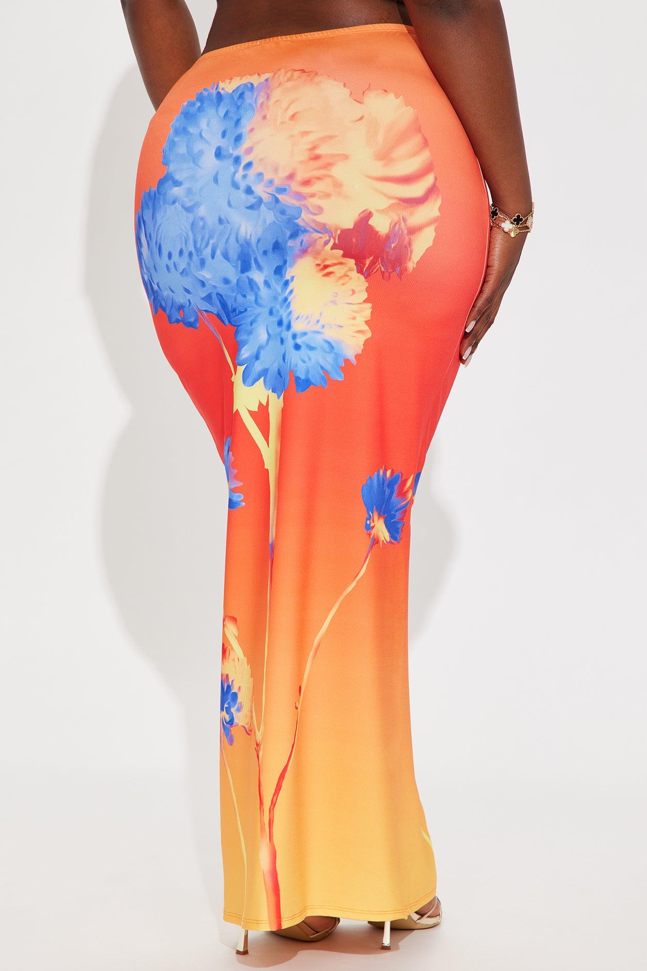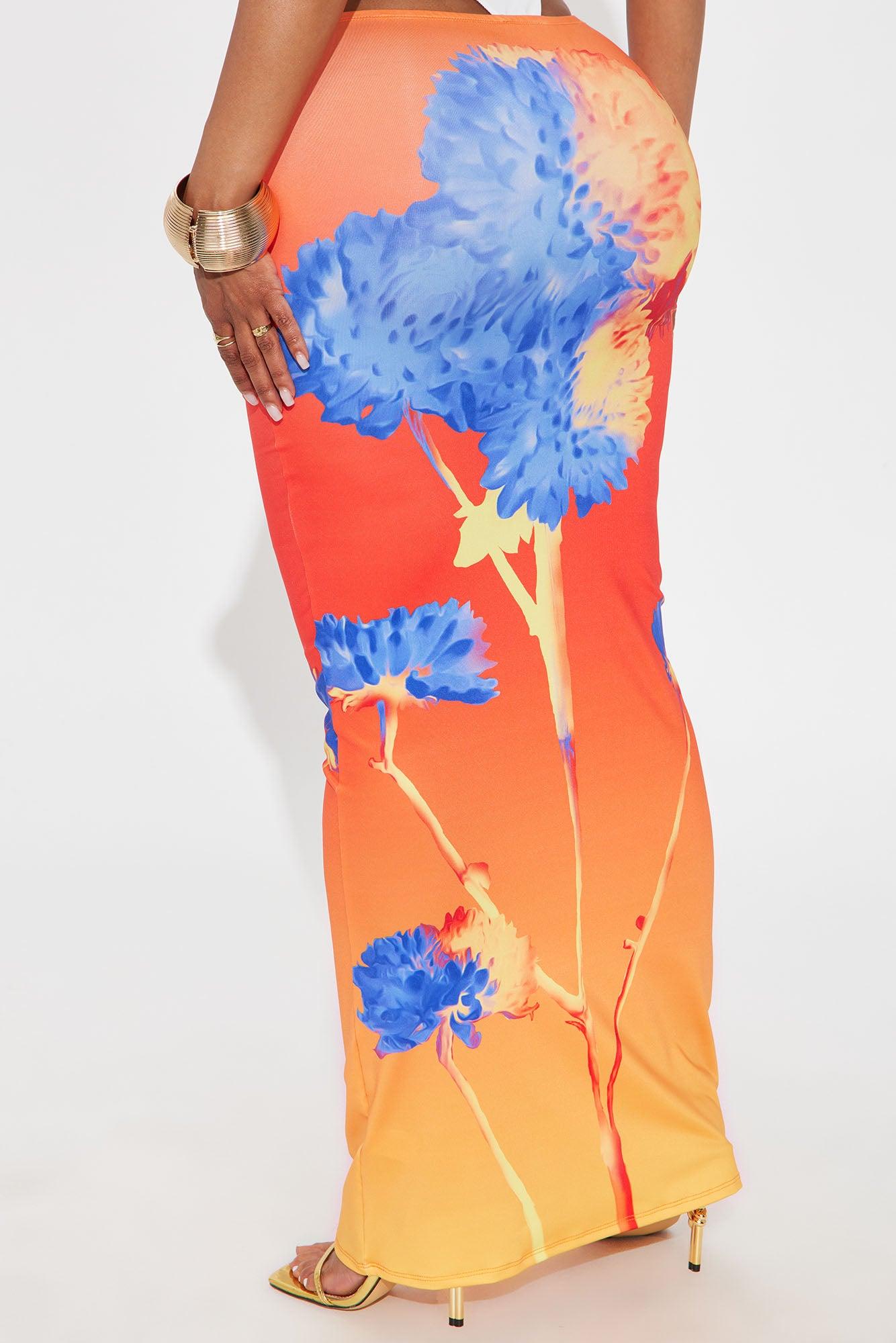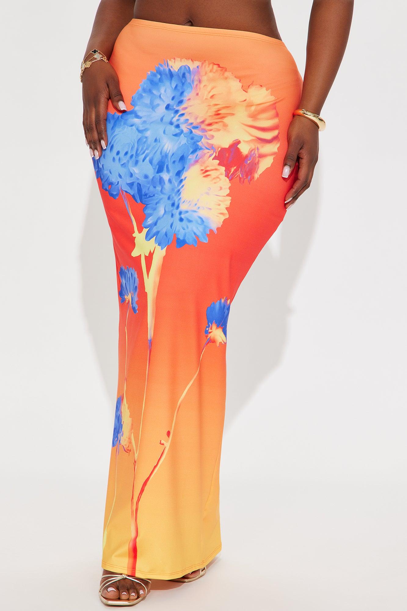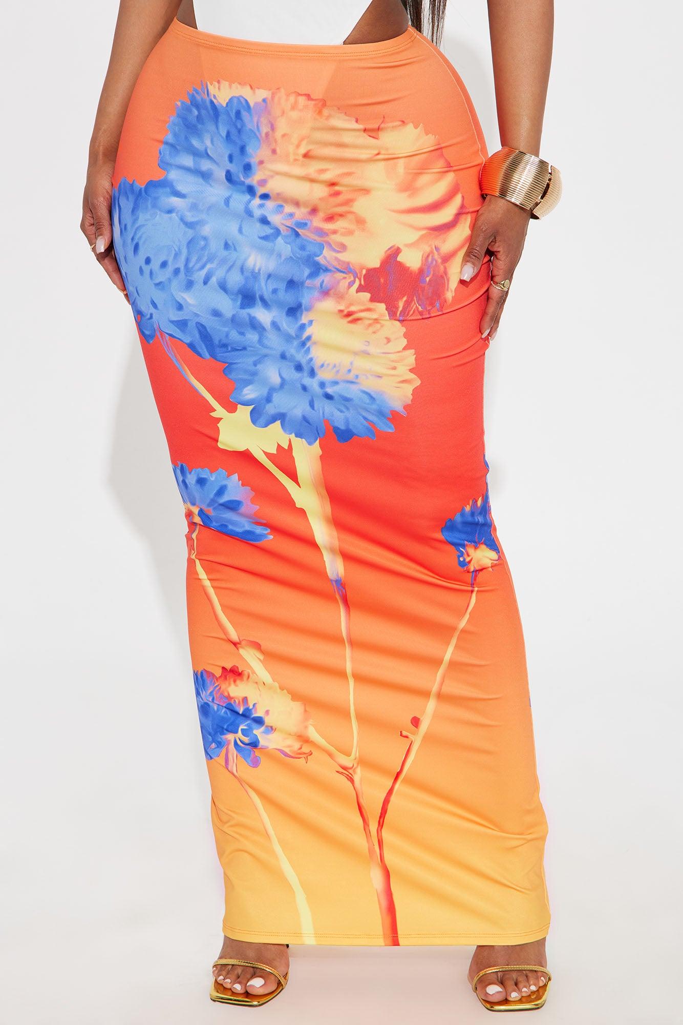 Sunsets In Cabo Floral Maxi Skirt - Orange/combo Female