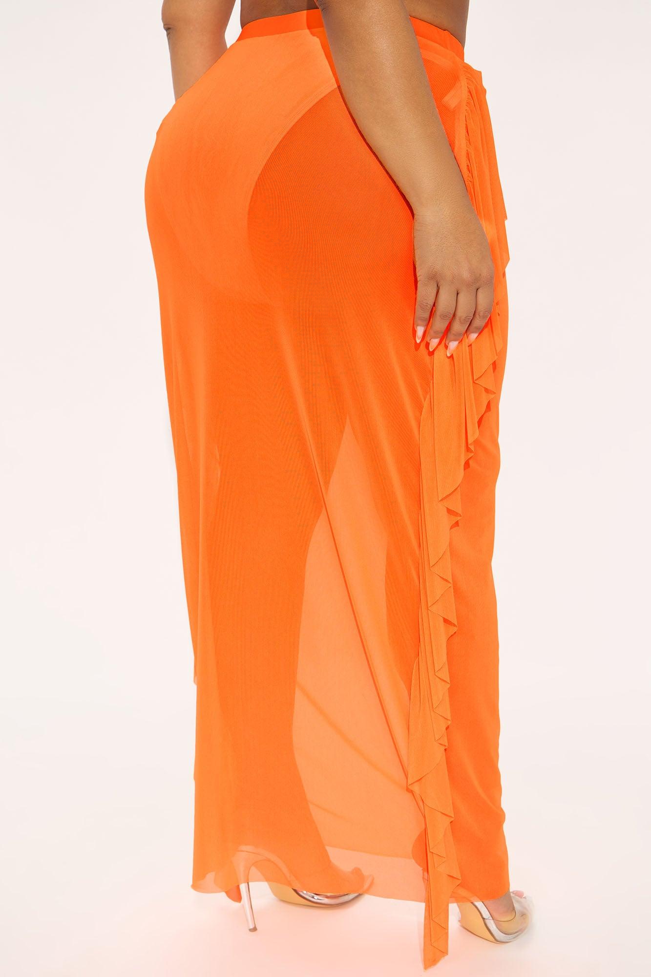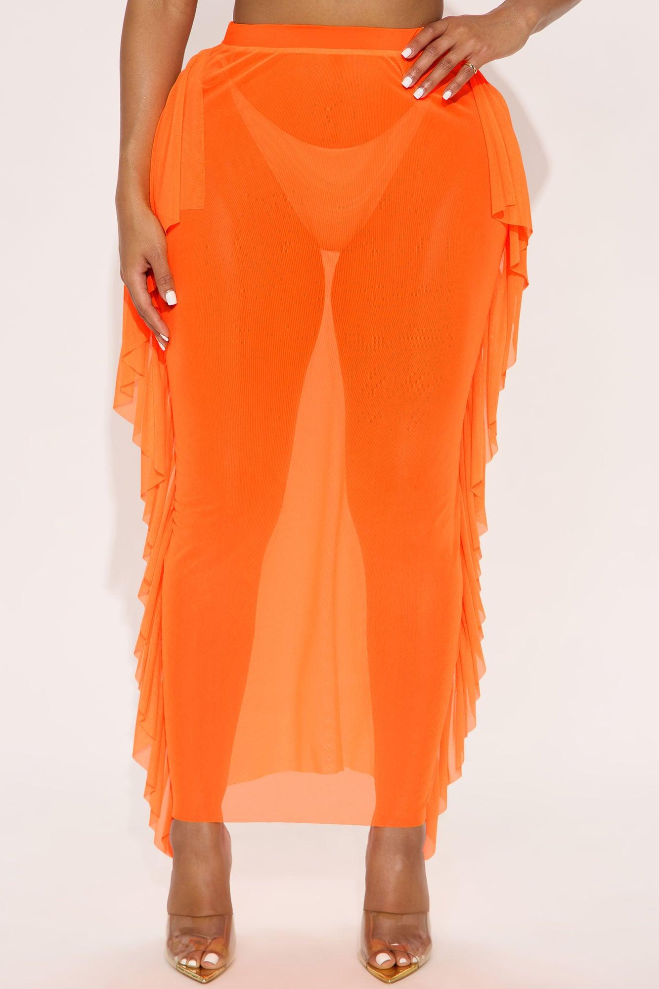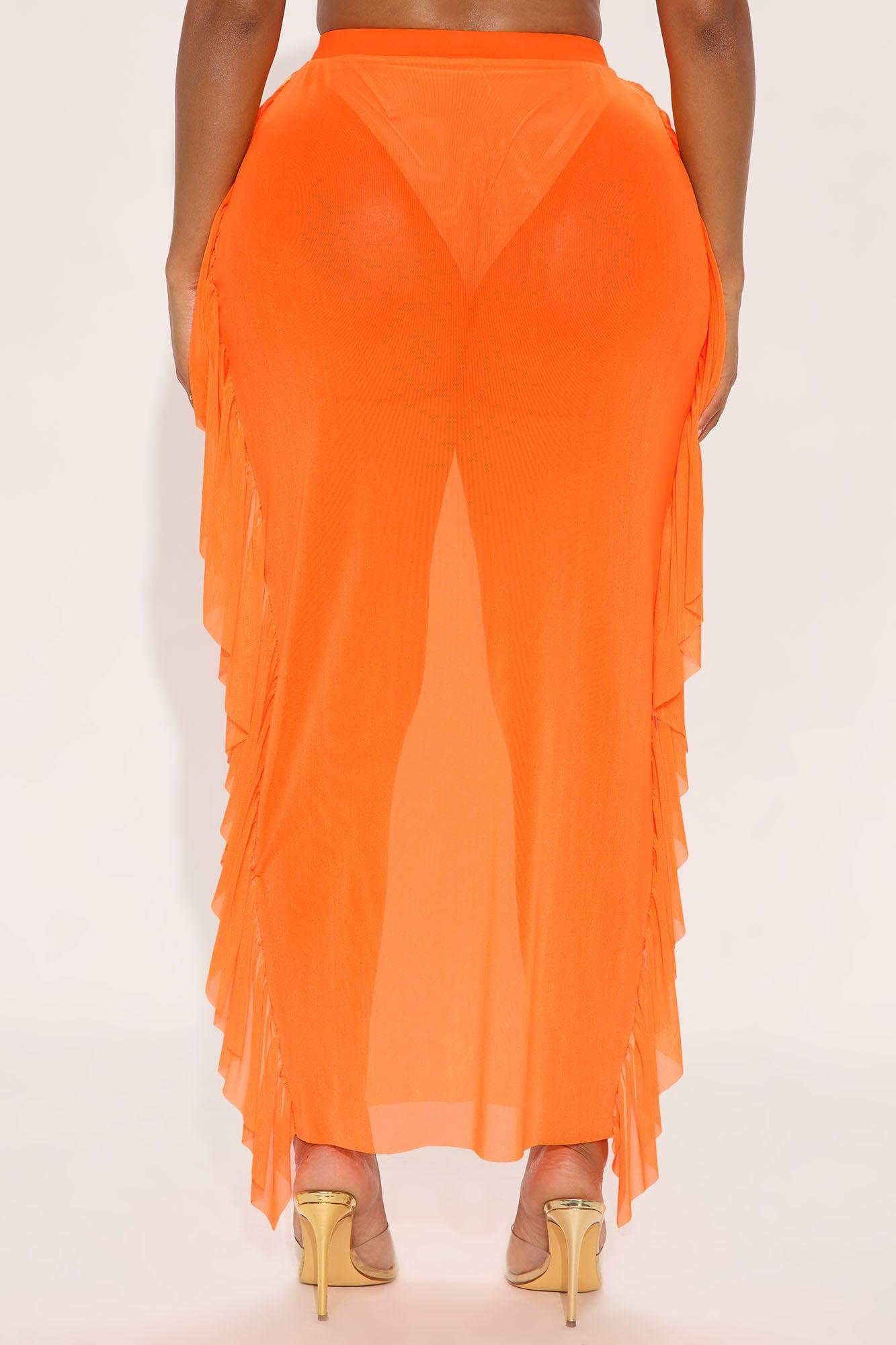 Available In Orange. Swim Cover Up Skirt Maxi Sheer Ruffle Trim Full Stretch Final Sale 95% Polyester 5% Spandex Imported