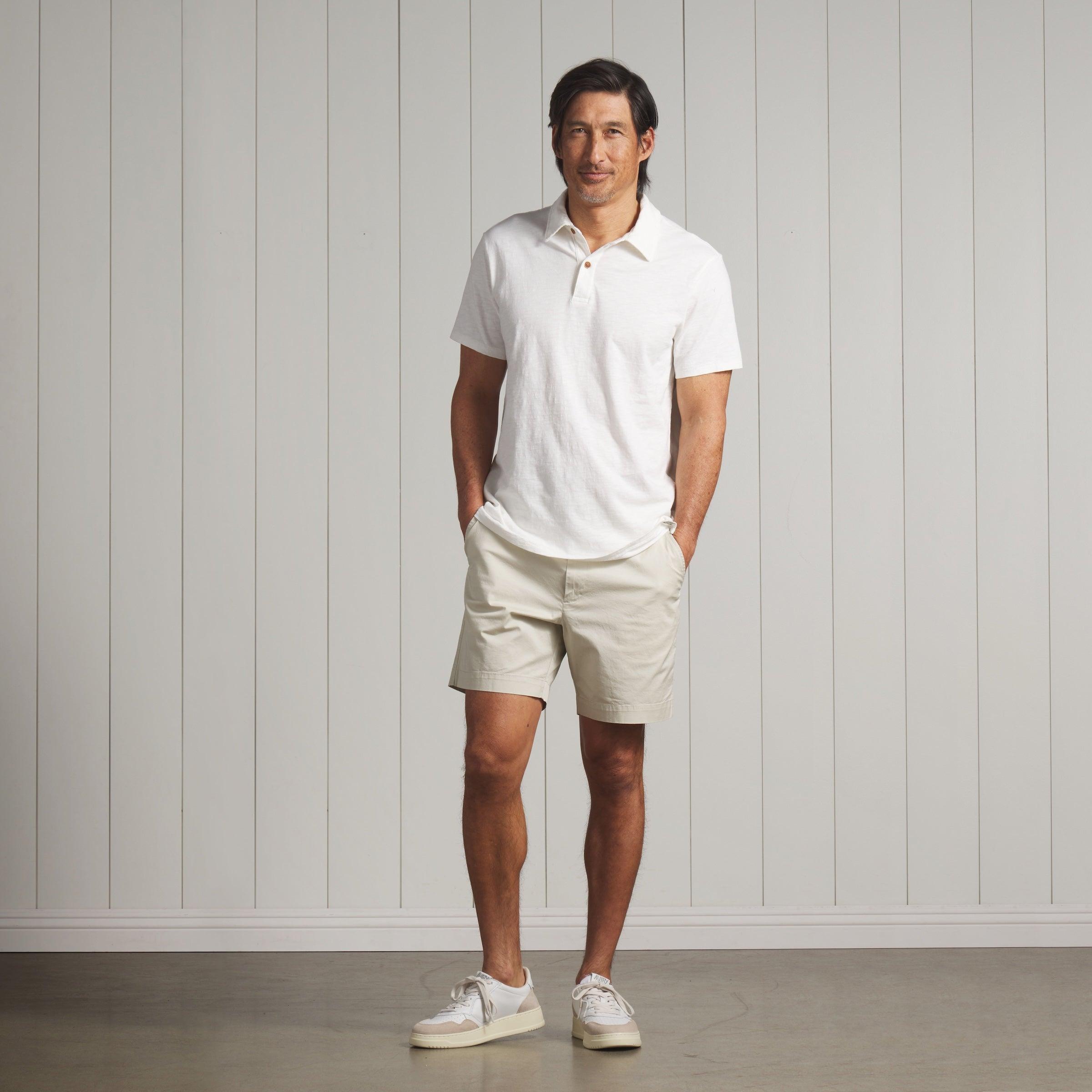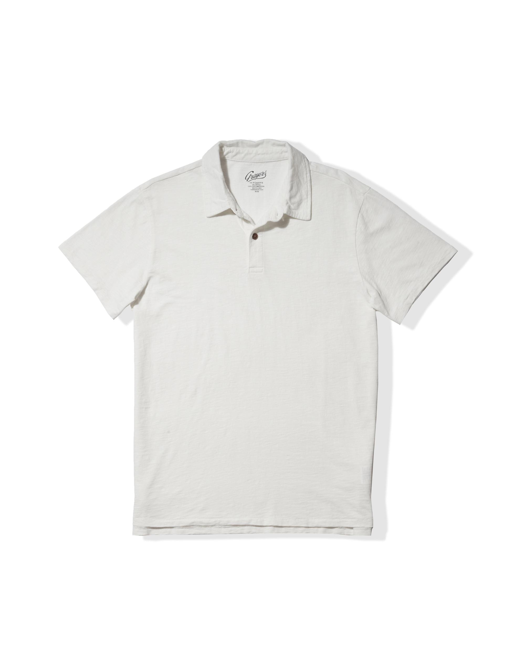 It will feel and wear like your favorite, on day one. Introducing our lightest in weight, all-cotton polo. Crafted with fine slub cotton yarn, the airy light weight jersey fabric is cut, sewn and garment dyed into rich and saturated colors. This season we've added a special "sunwash" to break in the placket and make it feel like its been your favorite of many in your closet. Naturally breathable with an ultra soft finish. The perfect summer polo. The Model is also wearing: Alternative Stretch Slim Fit 5 Pocket - Pebble and Thompson Flex Stretch Shorts - Birch. Model: Adrian is wearing size medium and is 6'. ----Details---- Modern fit 2 button placket Self fabric collar Slub cotton jersey Printed label for greater comfort Split tail Imported ----Materials---- 100% Cotton ----Size & Fit---- Measuring Method: All measurements are in inches and based on a “flat” garment, as shown below. For comparison with one of your existing garments, please lay garment on a flat surface and follow the key measurement points. For chest and neck, if you double the flat measurement, you will get close to the full body measurement. ----Care---- Machine Wash Cold Separately Do Not Soak Before Washing Do Not Bleach Remove Promptly Tumble Dry Low Or Hang Dry In Shaded Area Cool Iron If Necessary