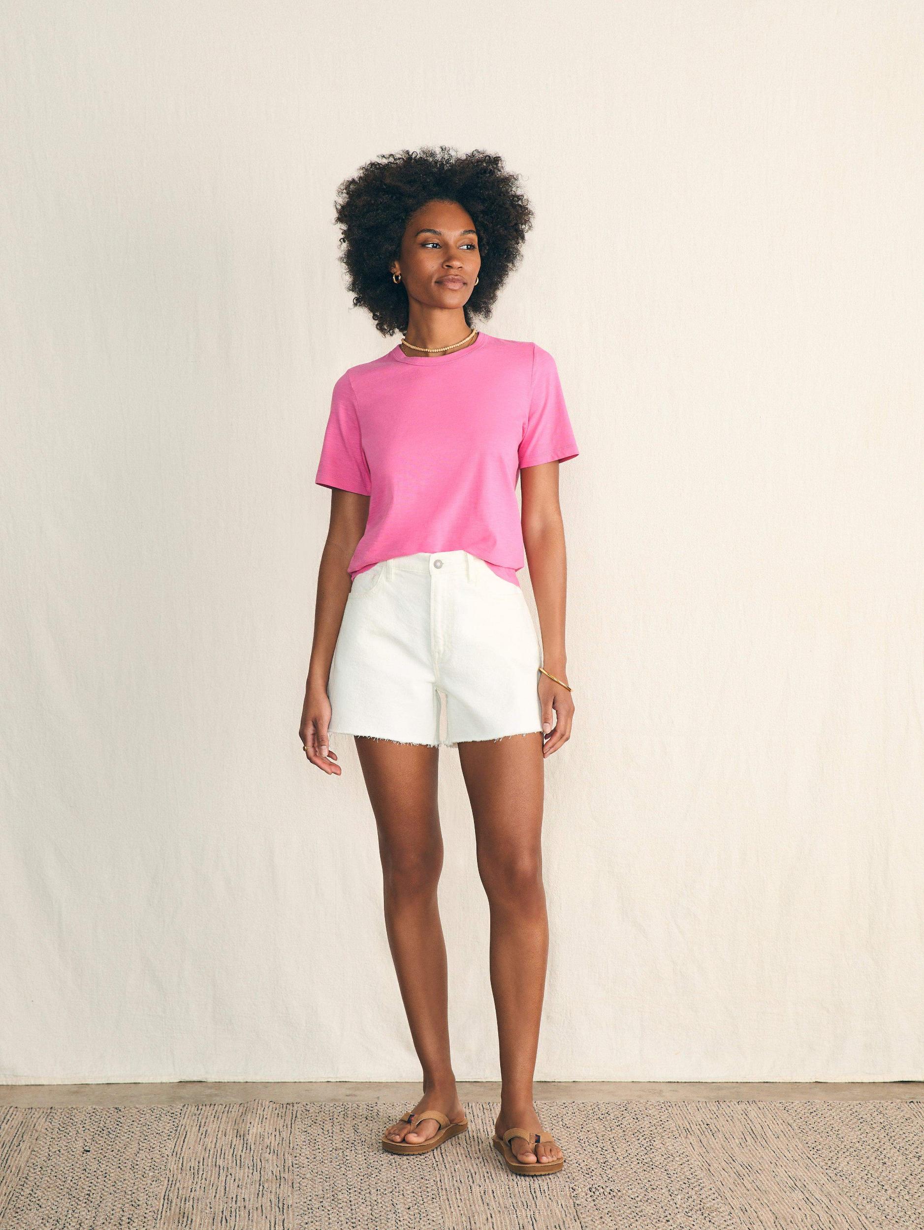 Inspired by iconic vintage T-shirts, our Sunwashed Tees are crafted in organic cotton that has been garment-washed for a perfectly lived-in look and feel. Cut with a relaxed silhouette, this is the timeless wear-with-everything tee. Some call these basics – we definitely don't. Fit: Classic fit Detail: Short sleeve. Crewneck tee. Material: 100% Organic Cotton Model: Gabrielle is 5’9 wearing size Small Care: Turn inside out. Machine Wash cold with like colors. Gentle cycle. Do not bleach. Tumble dry low. Remove promptly. Cool iron when needed. WKS2308-CFO