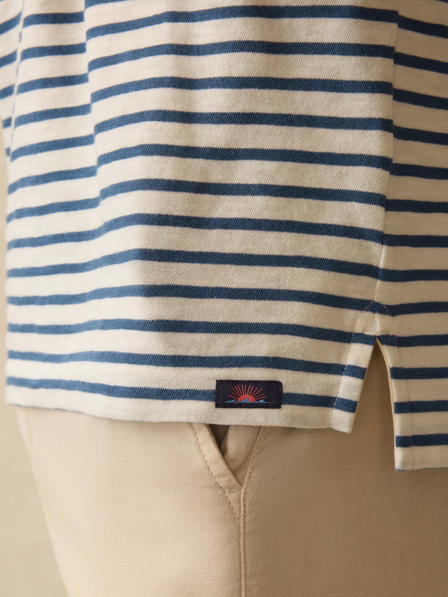 Meet the polo that feels like your favorite tee. Crafted from 100% Regenerative Organic Cotton and finished with an Ozone Wash for that just-right softness, our Sunwashed Polo is equal parts polished and relaxed. With an easy fit and breathable feel, it’s built for sunrise coffee runs, sunset drinks, and everything in between. Fit: Relaxed Fit, Length 28 1/2" Detail: Spread collar. Three-button placket. Woven accent fabric at interior collar stand and placket. Short sleeves. Vented hem. Sun & Waves label at wearer's left hem. Material: 100% Regenerative Organic Cotton Model: Thaddeus is 6'1 wearing size Medium Care: Turn inside out. Machine wash cold with like colors. Gentle cycle. Do not bleach. Tumble dry low. Remove promptly. Cool iron when needed. MKS2530-IVR