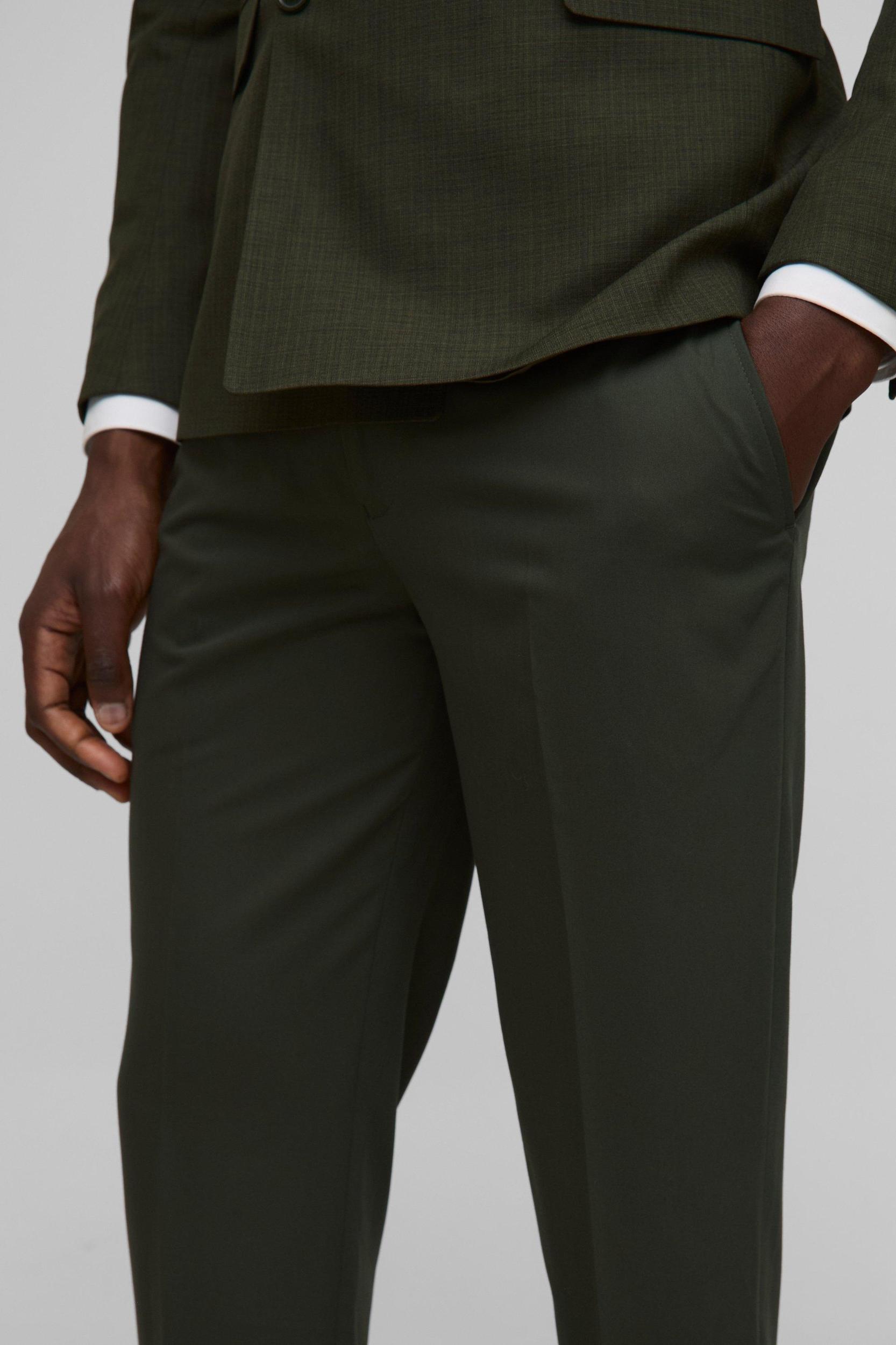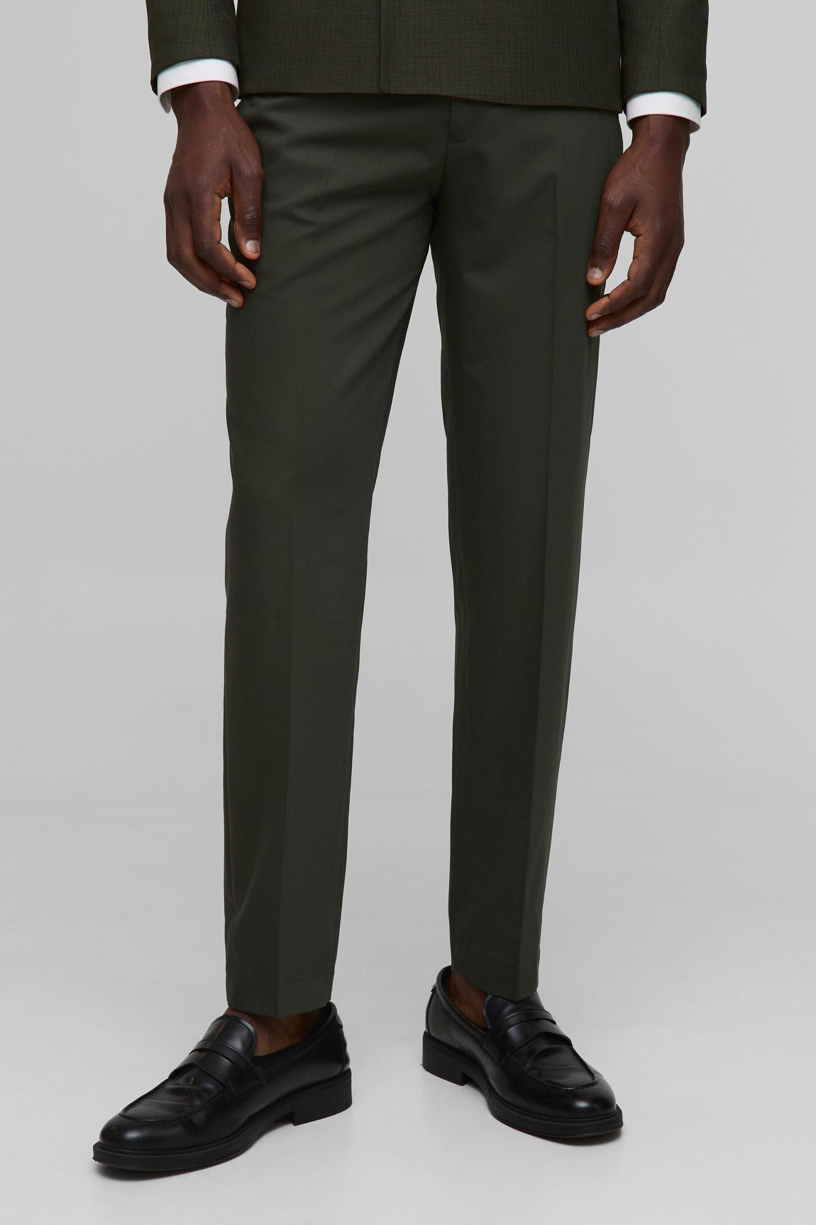 Mens Green Super Skinny Khaki Trouser - Swap your denim for trousers for extra style points. Put aside your jeans for a day and go for a pared down but at the same time casually dapper option with our collection of mens trousers. Youll be surprised at how easy is for any gent to look polished and sharp in a pair of smart pants and a cool top. Choose chinos or suit trousers for the office or formal occasions, and complete your ensemble with a nice shirt or and formal shoes. For a night out with the lads, show some casual style skills in cargo pants or cropped pants, and pair them with a striped t-shirt and high-top trainers or brogues for extra style points.Style: Suit TrousersDesign: PlainFabric: PolyesterLength: Regular