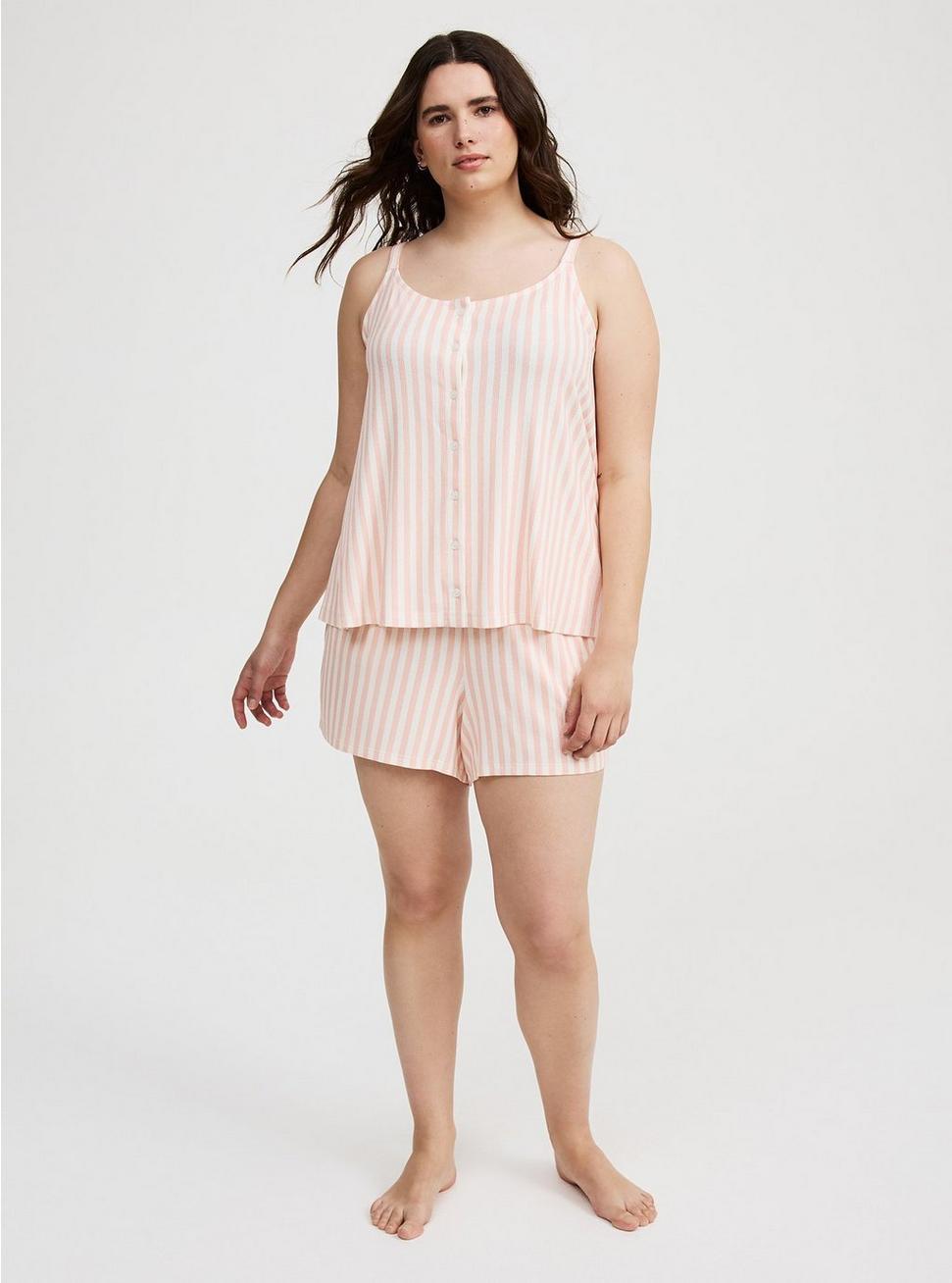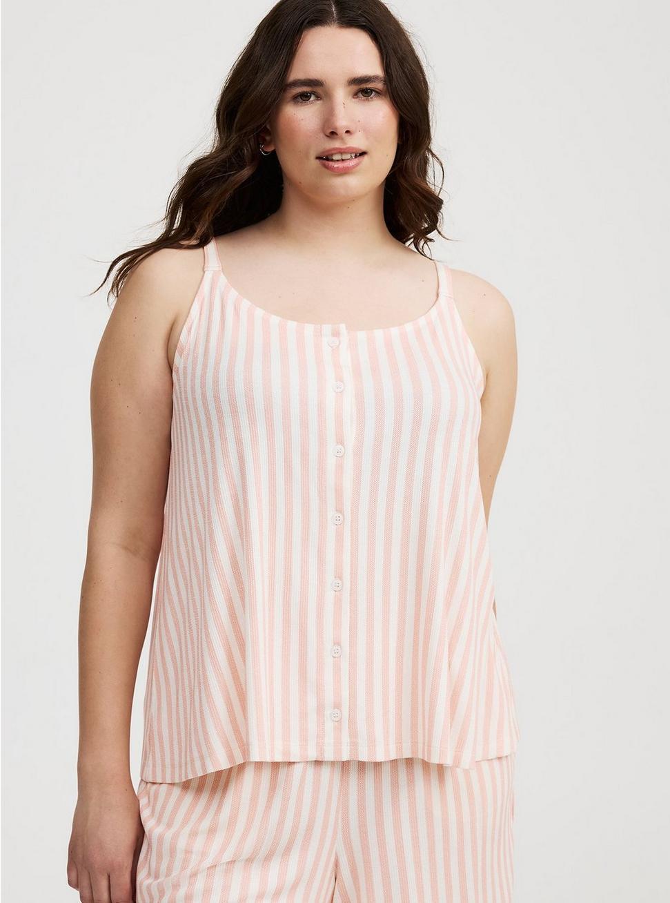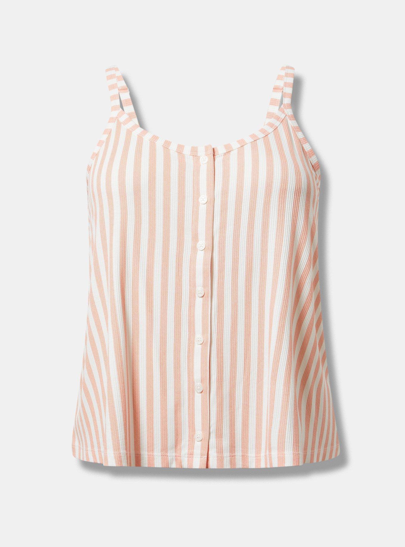 FITMeasures 35'' from shoulder (size 2).MATERIALS + CARESuper Soft knit fabric: An incredibly soft, versatile knit that hugs close to the body.Stretch level: Maximum.95% rayon, 5% spandex.Machine wash cold. Line dry. Imported.DETAILSHigh scoop neckline.Sleeveless.Adjustable straps.Button front.Ribbed texture.