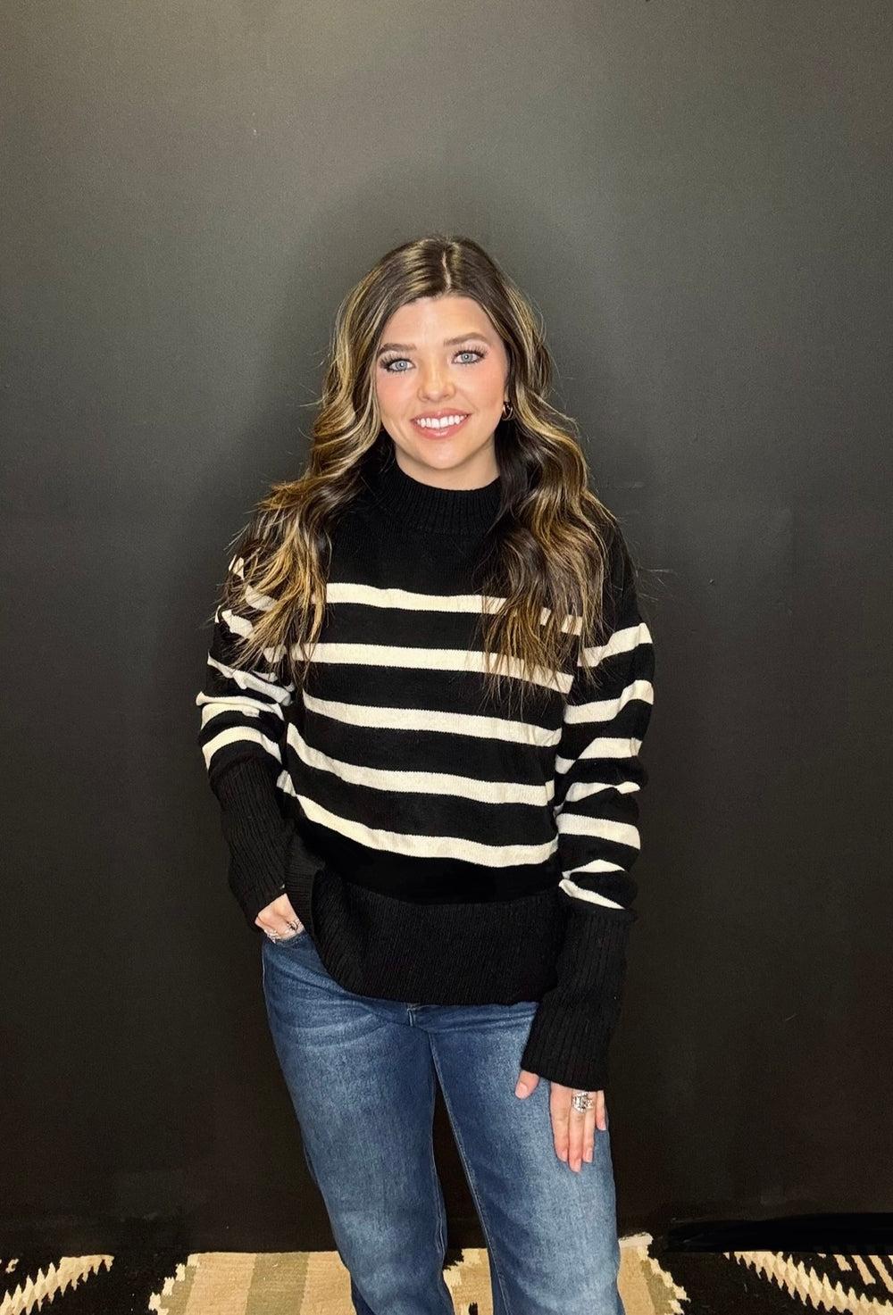 Super Soft Ribbed Striped Mock Neck Loose Fit Sweater- 3 Colors*