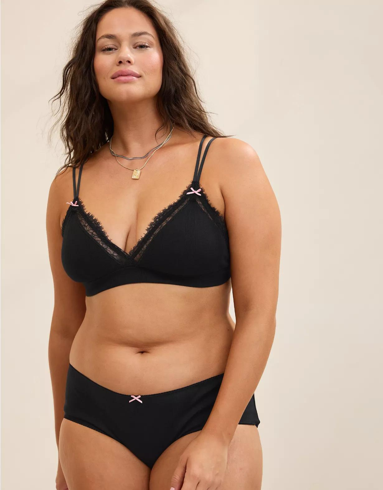 Feminine pointelle fabric with lace trim and bow details in in a padded triangle fit!