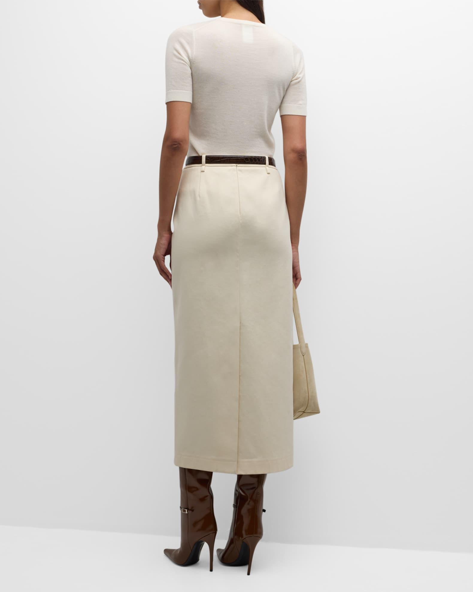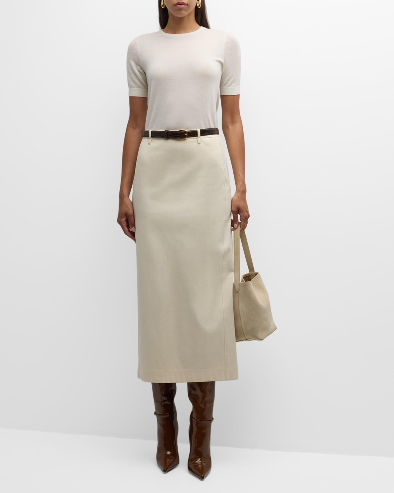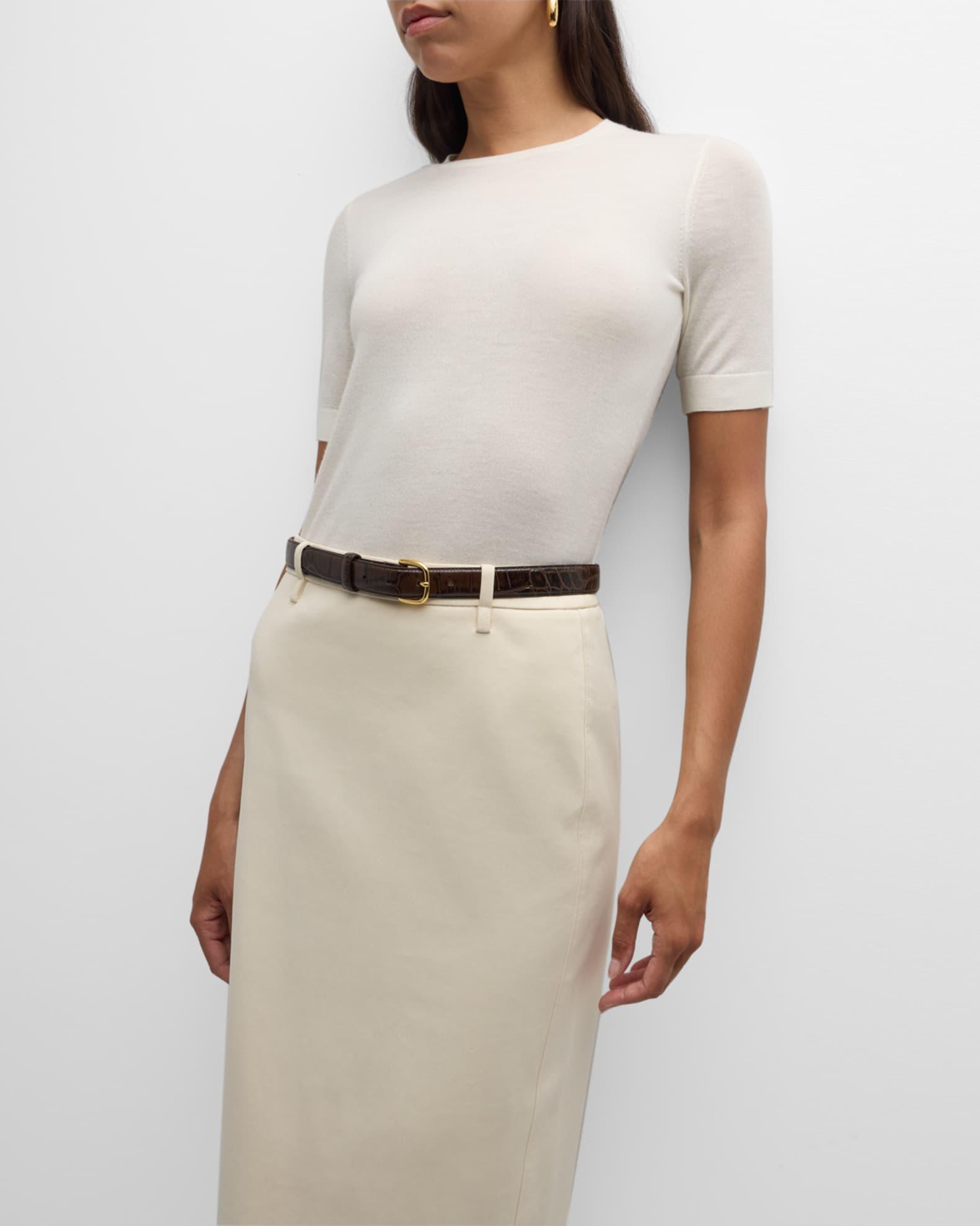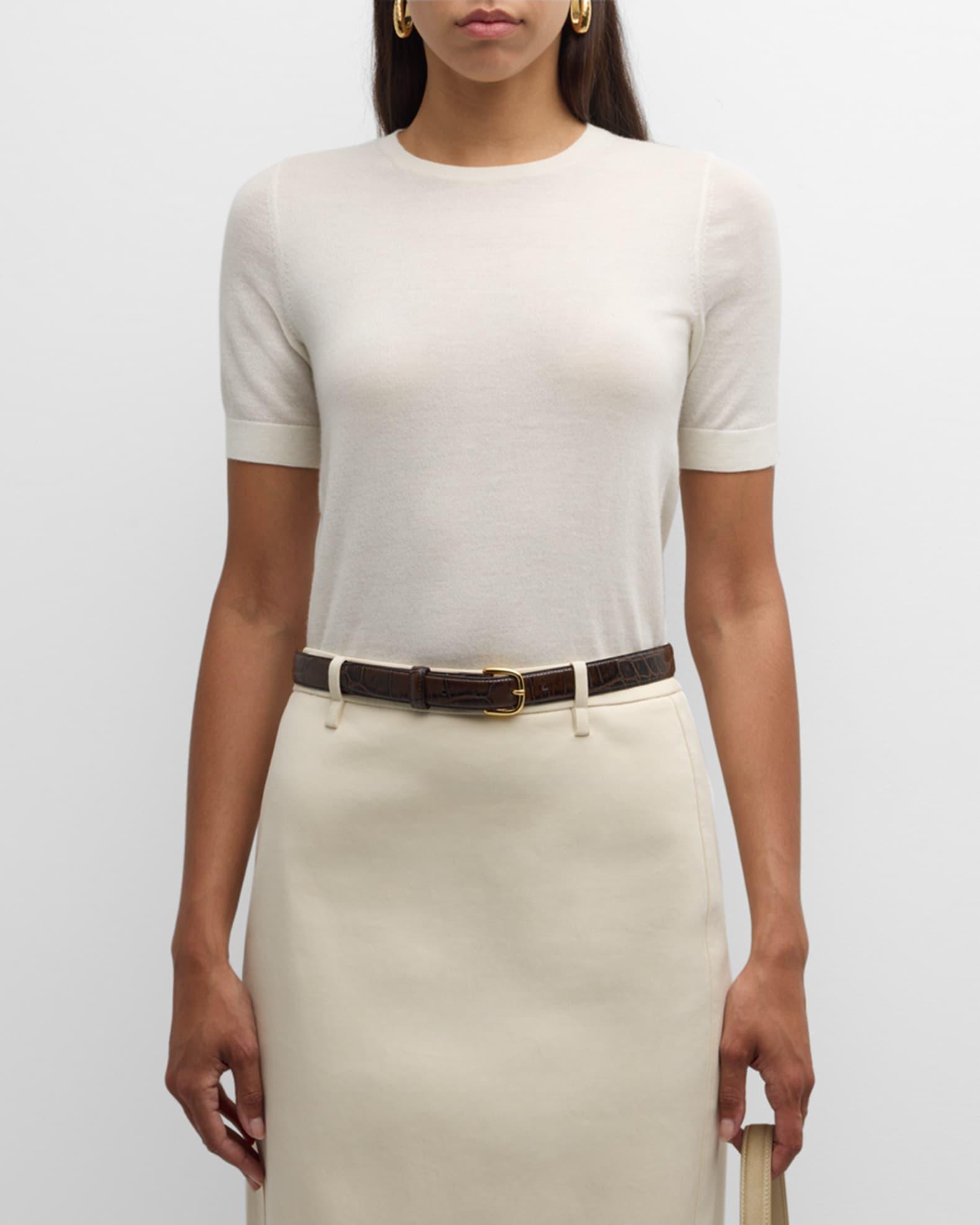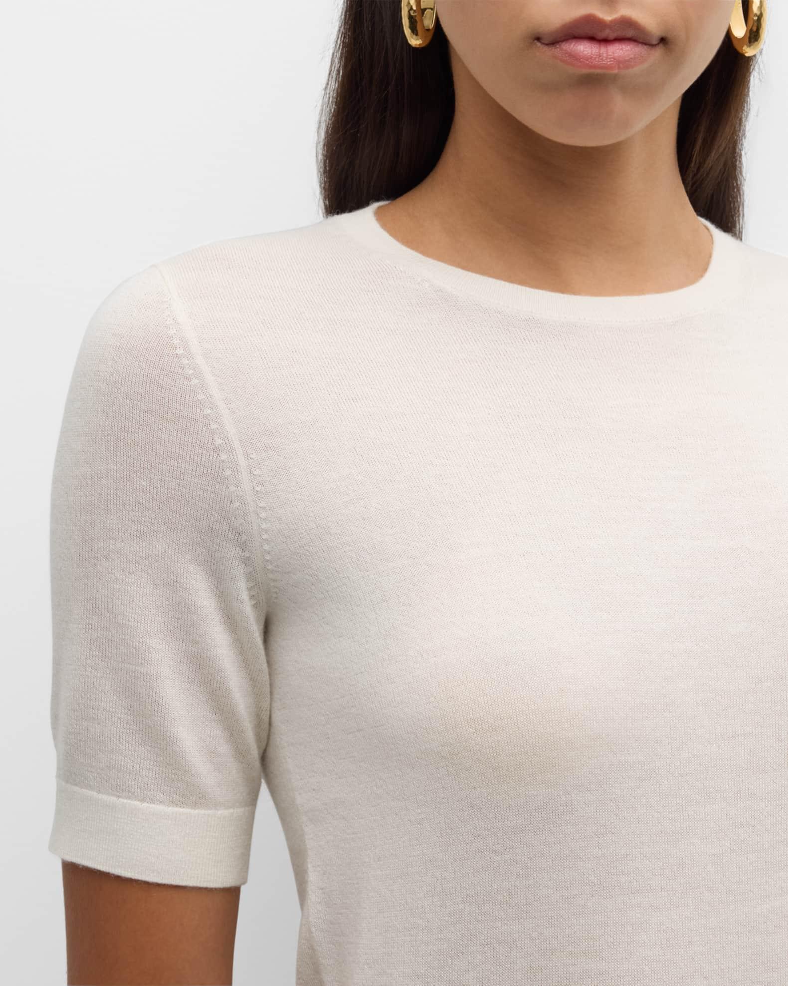 Neiman Marcus Cashmere Collection sweater in superfine cashmere Approx. 23.5"L from shoulder to hem 16GG, 2 ply Crew neckline Short sleeves; approx. 16.5"L Relaxed fit Ribbed trim Cropped length Pullover style Cashmere Dry clean Imported Model is 5'10"/177cm.