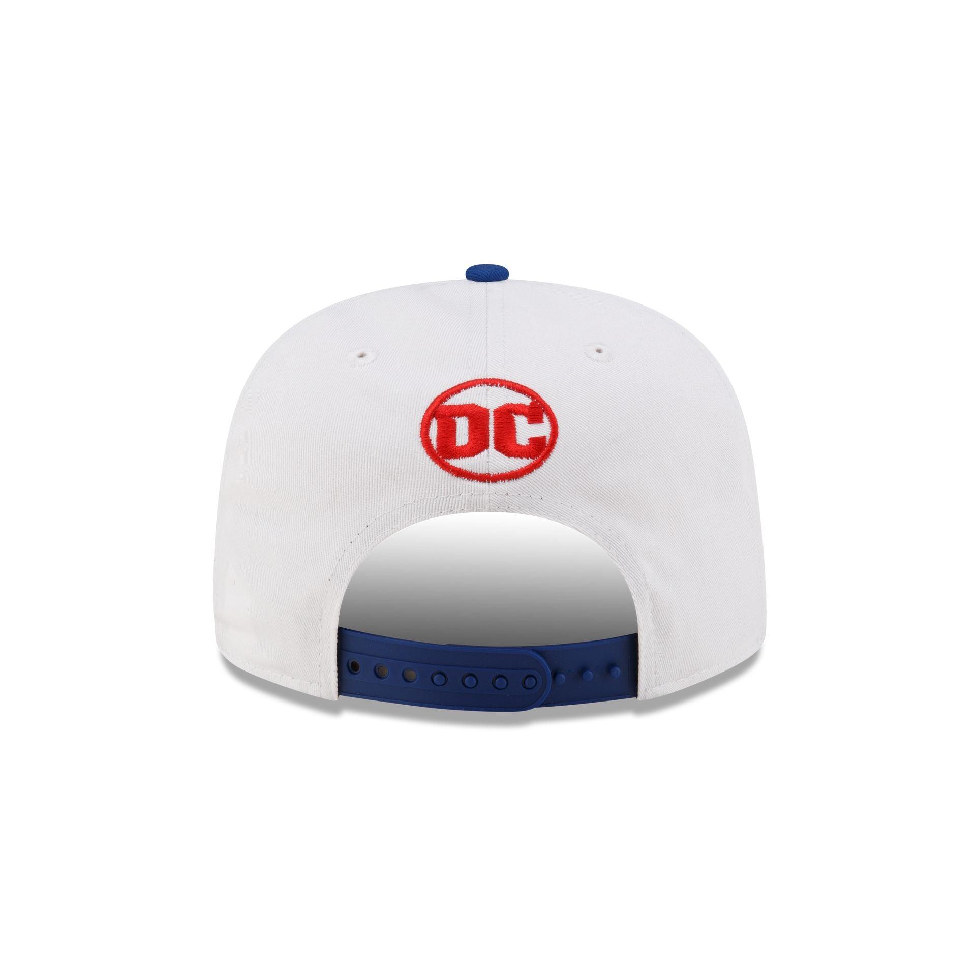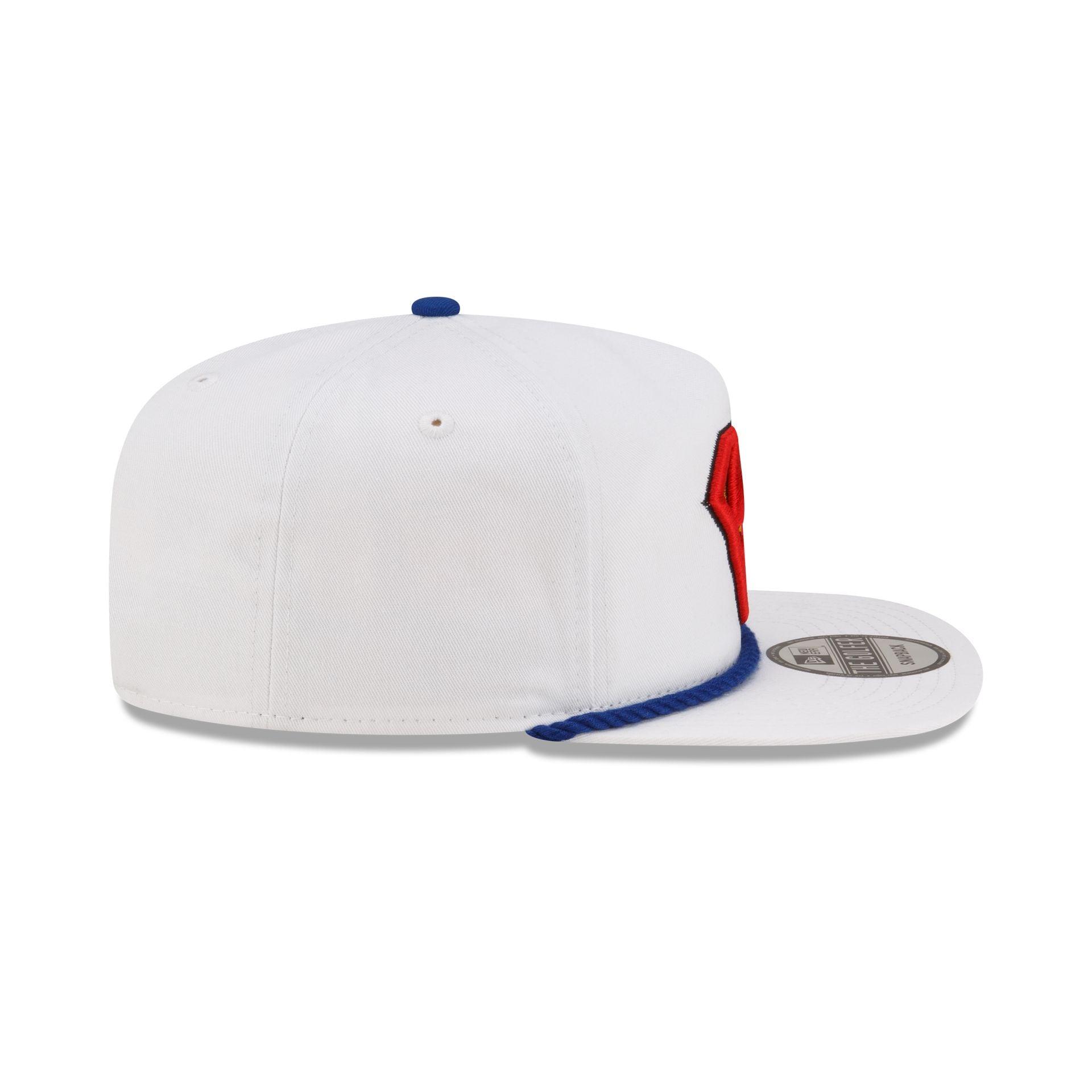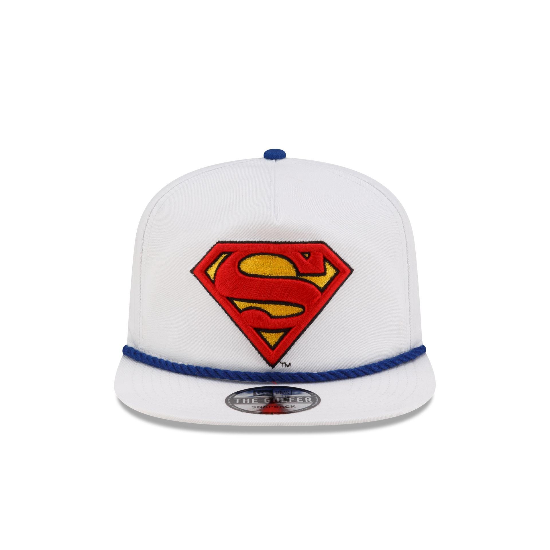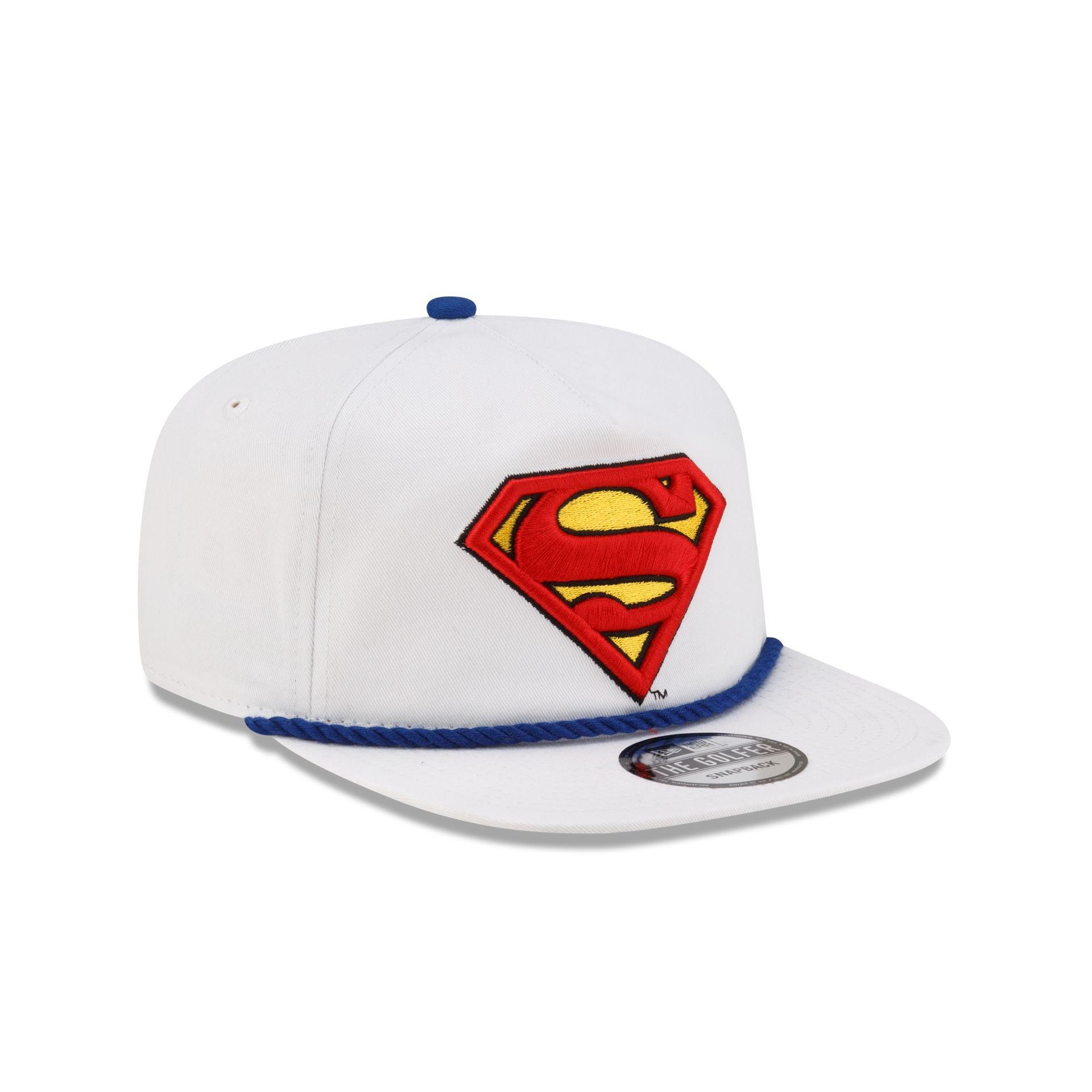 The Superman Golfer Snapback features an embroidered Superman logo at the front panels with the DC logo above a snapback closure at the rear and a blue undervisor.