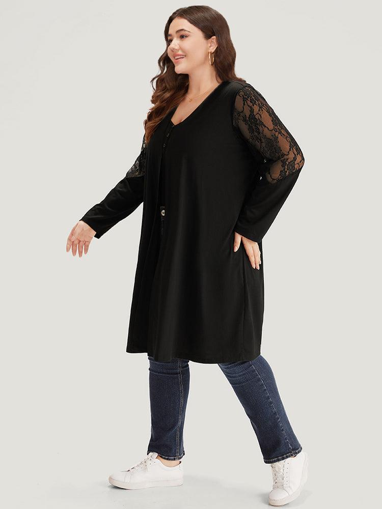 Shop Supersoft Essentials Solid Crochet Lace Mesh Drape Open Front Coat now and redefine your style with confidence at BloomChic. Tailored for mid and plus-size women. This trendy Outerwear Women, sizes 10-30. Season:Fall;Color:Black;Style:Casual;Pattern Type:Plain;Details:Lace, Patchwork, Drape;Pocket:No-pocket;Belt:No-belt;Lining:No-lining