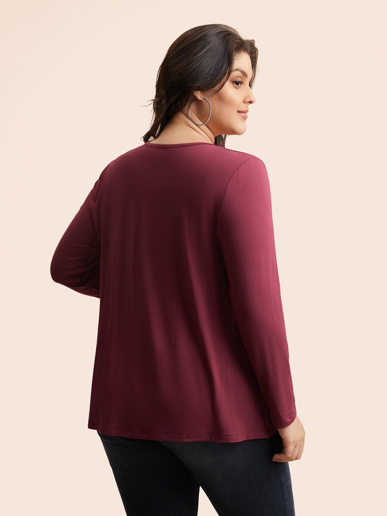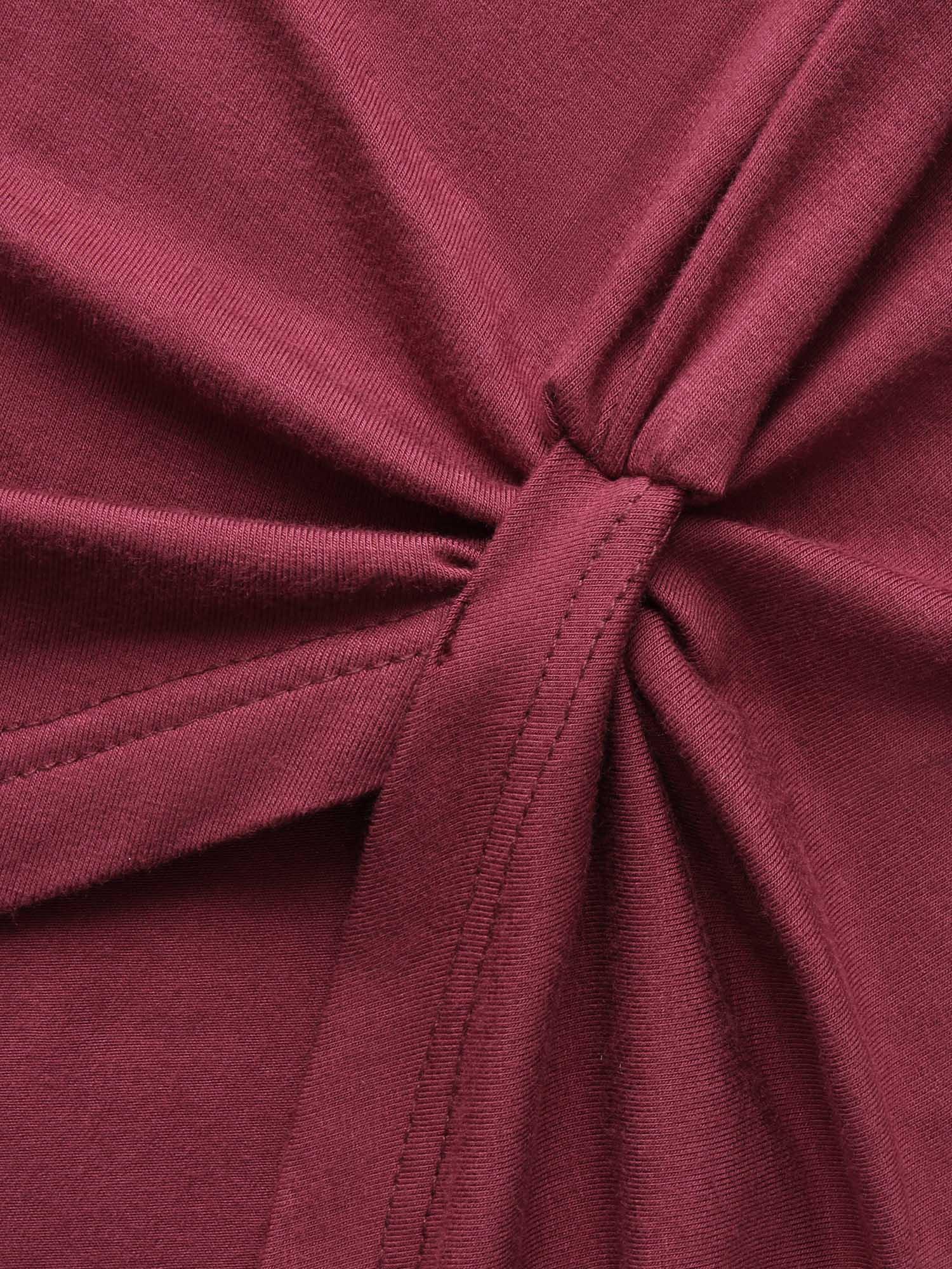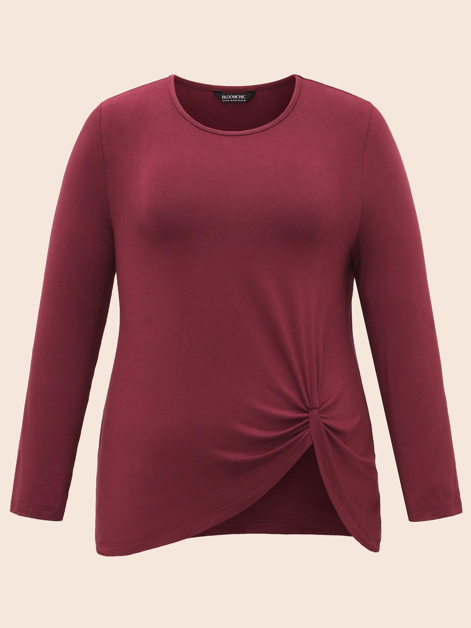 Shop Supersoft Essentials Solid Twist Front T-shirt now and redefine your style with confidence at BloomChic. Tailored for mid and plus-size women. This trendy Tops Women, sizes 10-30. Season:Winter;Color:Plum;Style:Casual;Prints:Non;Neckline:Round Neck;Sleeve Type:Regular Sleeve;Details:Twist, Asymmetrical;Pocket:No-pocket