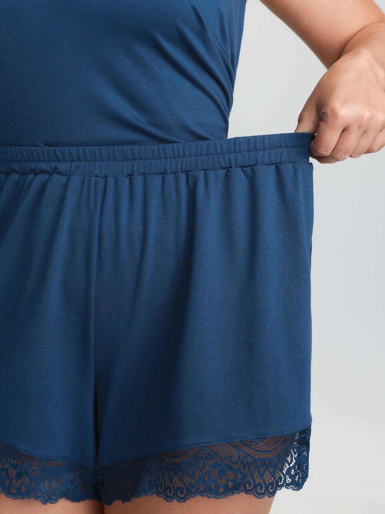 Shop Supersoft Lace Trim V-Neck Co-ord Lounge Set now and redefine your style with confidence at BloomChic. Tailored for mid and plus-size women. This trendy Loungewear Women, sizes 10-30. Color:Mediumblue;Style:Leisure;Neckline:Deep V-neck;Sleeve Type:Sleeveless;Prints:Non;Details:Woven ribbon&lace trim, Texture;Pocket:No-pocket;Belt:No-belt;Closure Type:Non