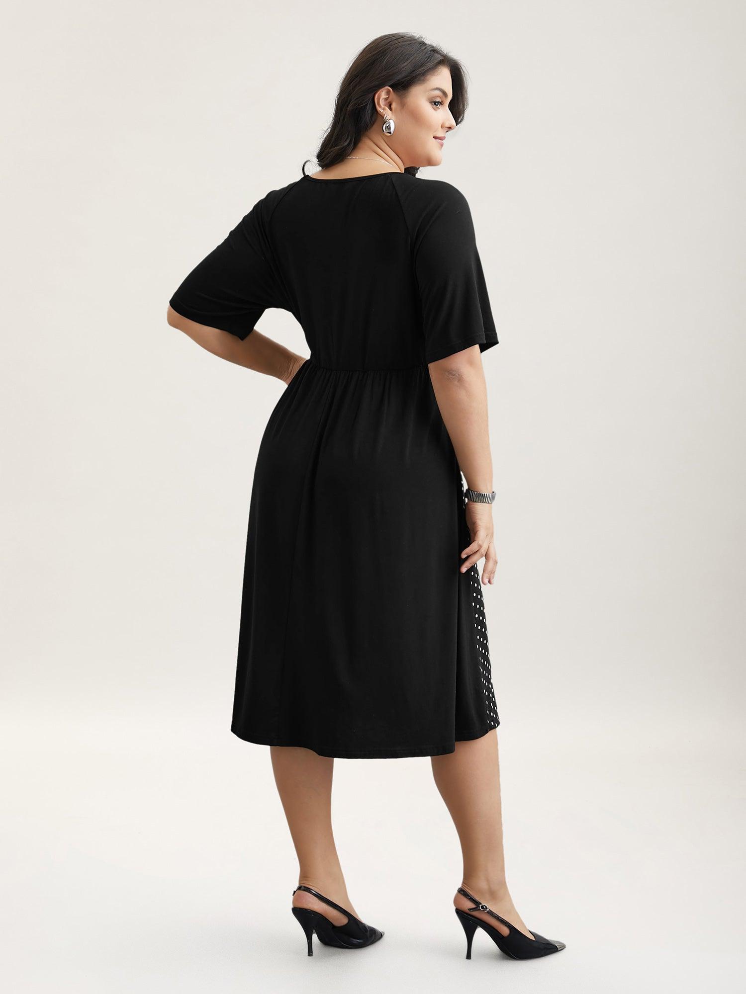 Shop Supersoft Polka Dot Waist-Cinched Midi Dress now and redefine your style with confidence at BloomChic. Tailored for mid and plus-size women. This trendy Dresses Women, sizes 10-30. Color:BlackFlower;Style:At the Office;Neckline:V-neck;Sleeve Type:Regular Sleeve;Prints:Polka dots;Details:Patchwork;Pocket:Side seam pocket;Belt:No-belt;Closure Type:Non