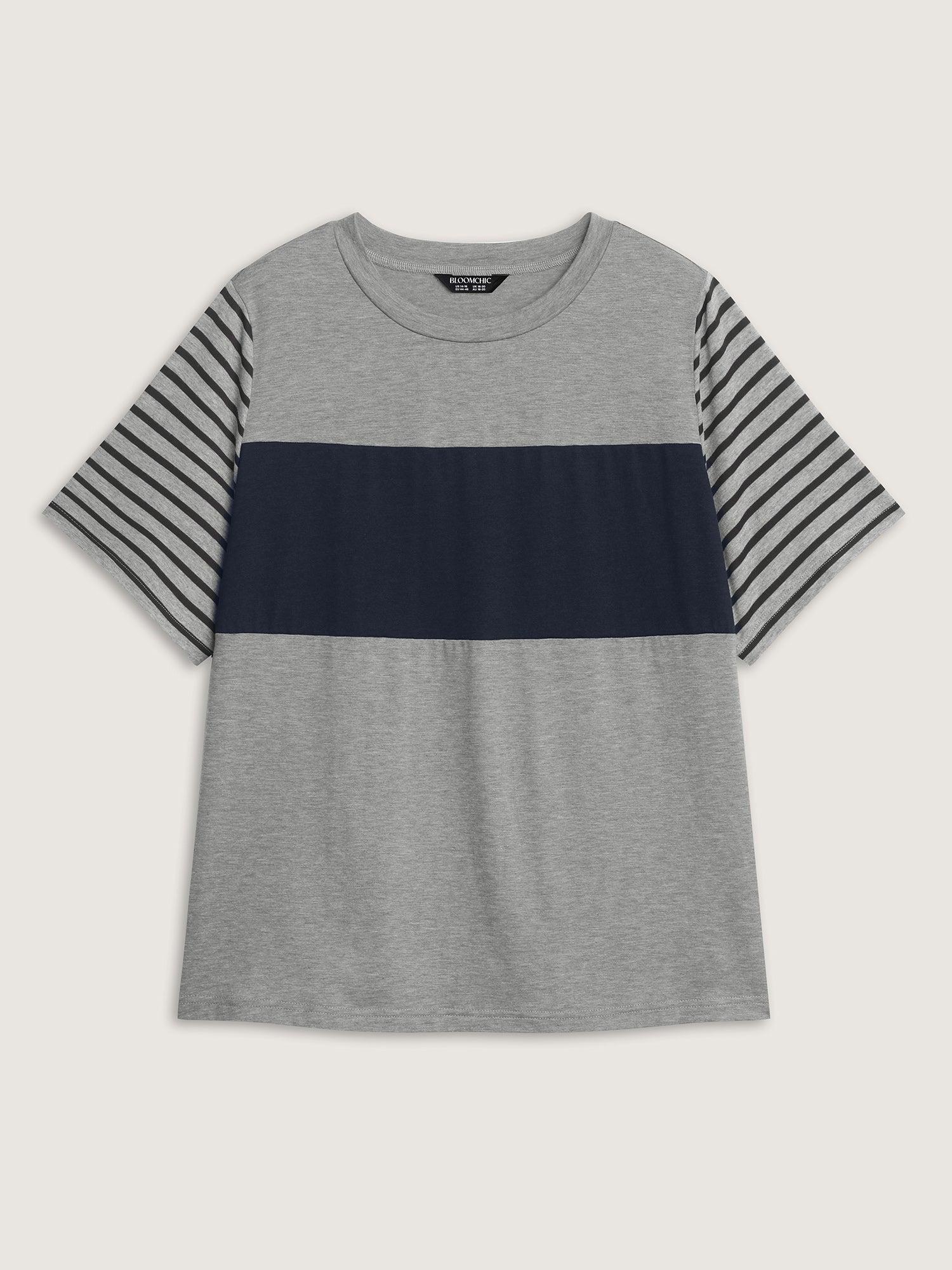 Shop Supersoft Striped Color Contrast T-Shirt now and redefine your style with confidence at BloomChic. Tailored for mid and plus-size women. This trendy Tops Women, sizes 10-30. Color:Light Gray;Style:Leisure;Prints:Stripes;Neckline:Round Neck;Sleeve Type:Regular Sleeve;Details:Contrast;Pocket:No-pocket
