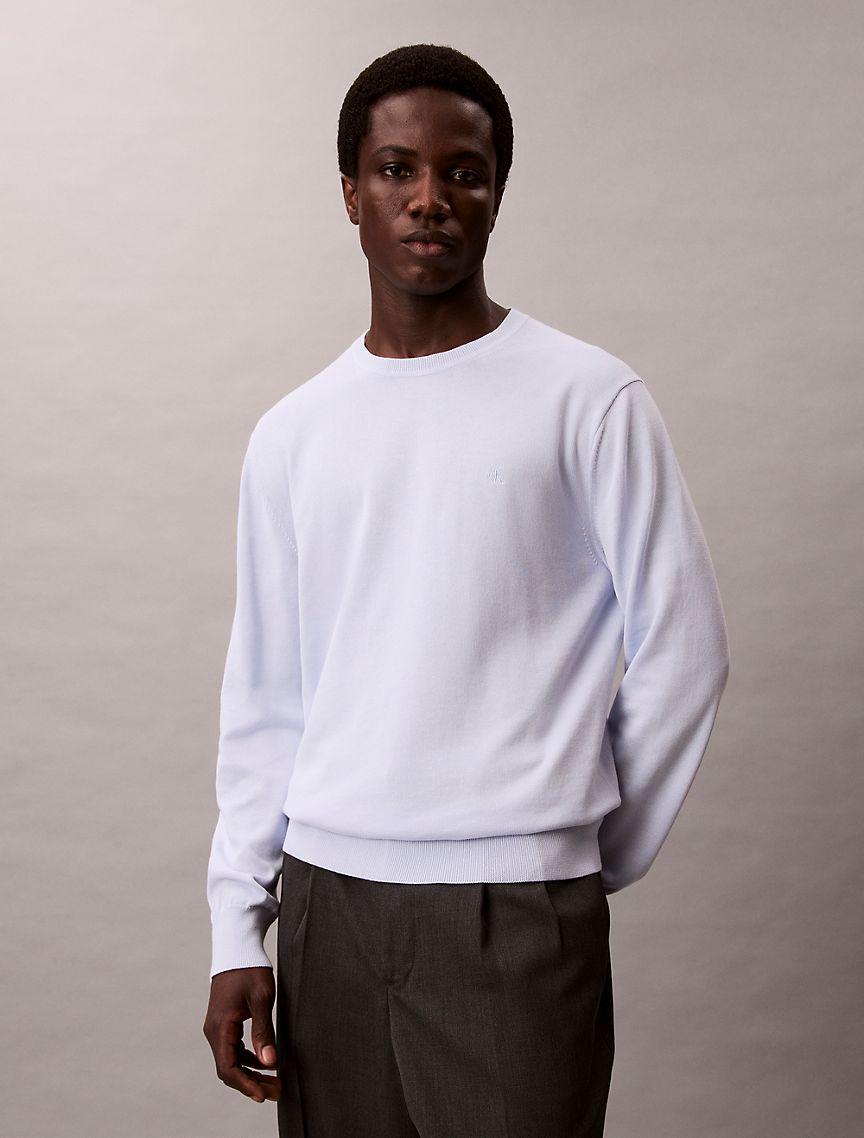 A soft, classic knit in 100% supima cotton. This sweater has long sleeves and a crewneck. Embroidered with a monogram logo at the upper chest.