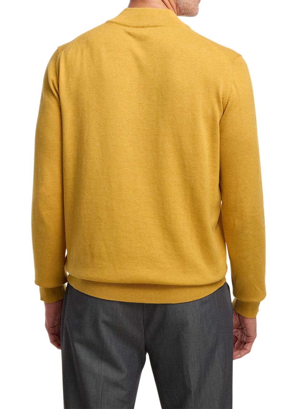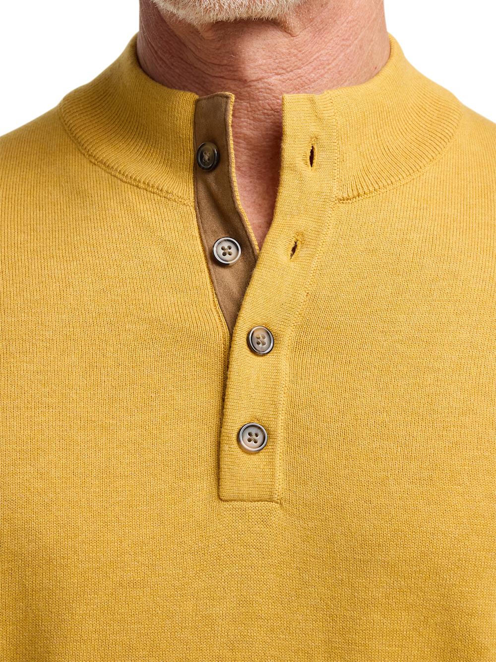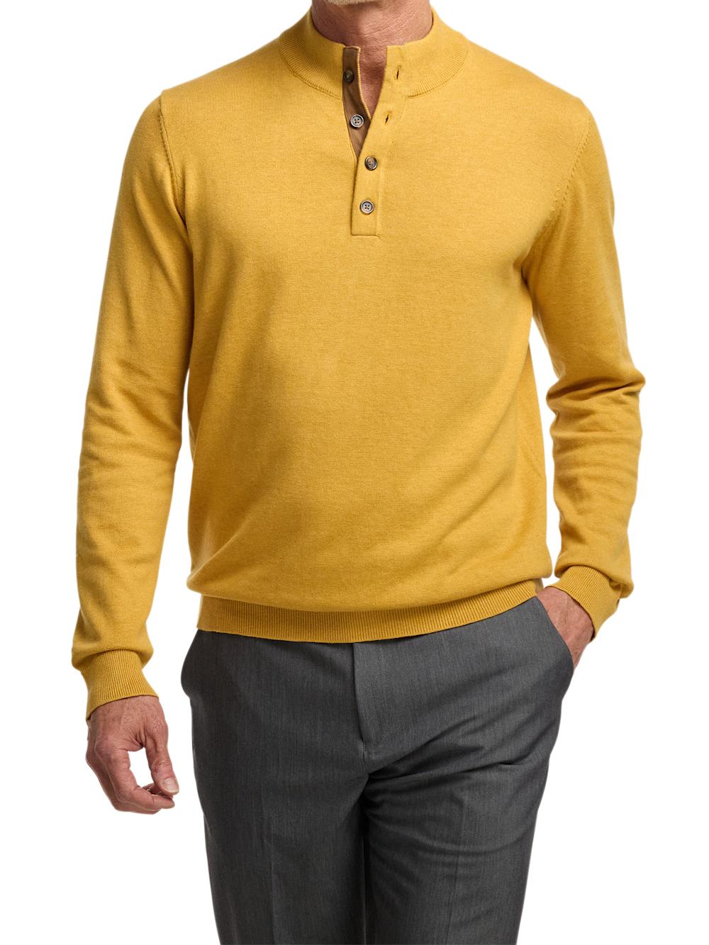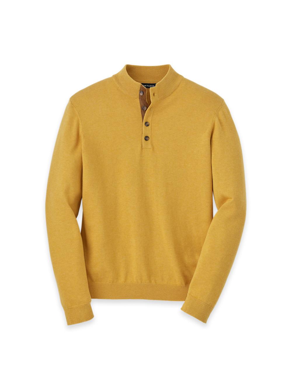 Supima Cotton Four Button Mock Neck Sweater - Mustard