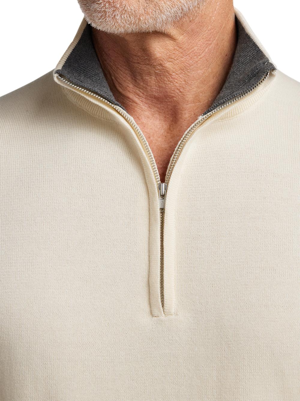 Supima Cotton Quarter Zip Mock Neck Sweater - Ivory