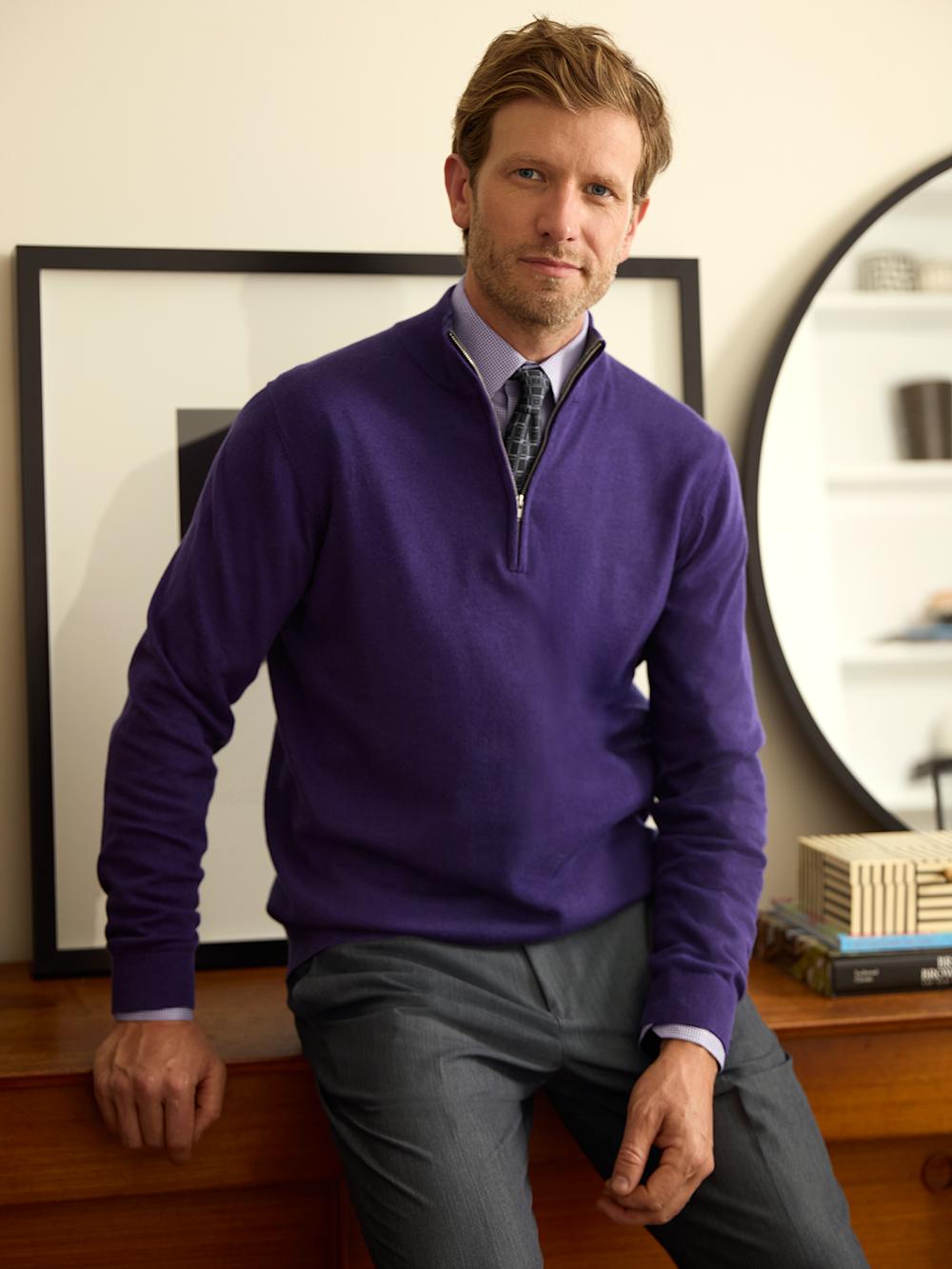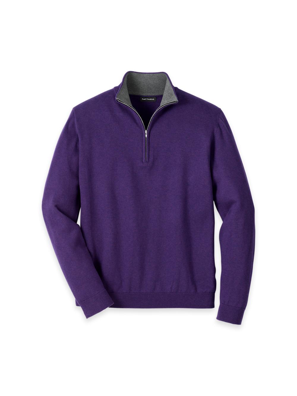Supima Cotton Quarter Zip Mock Neck Sweater - Plum
