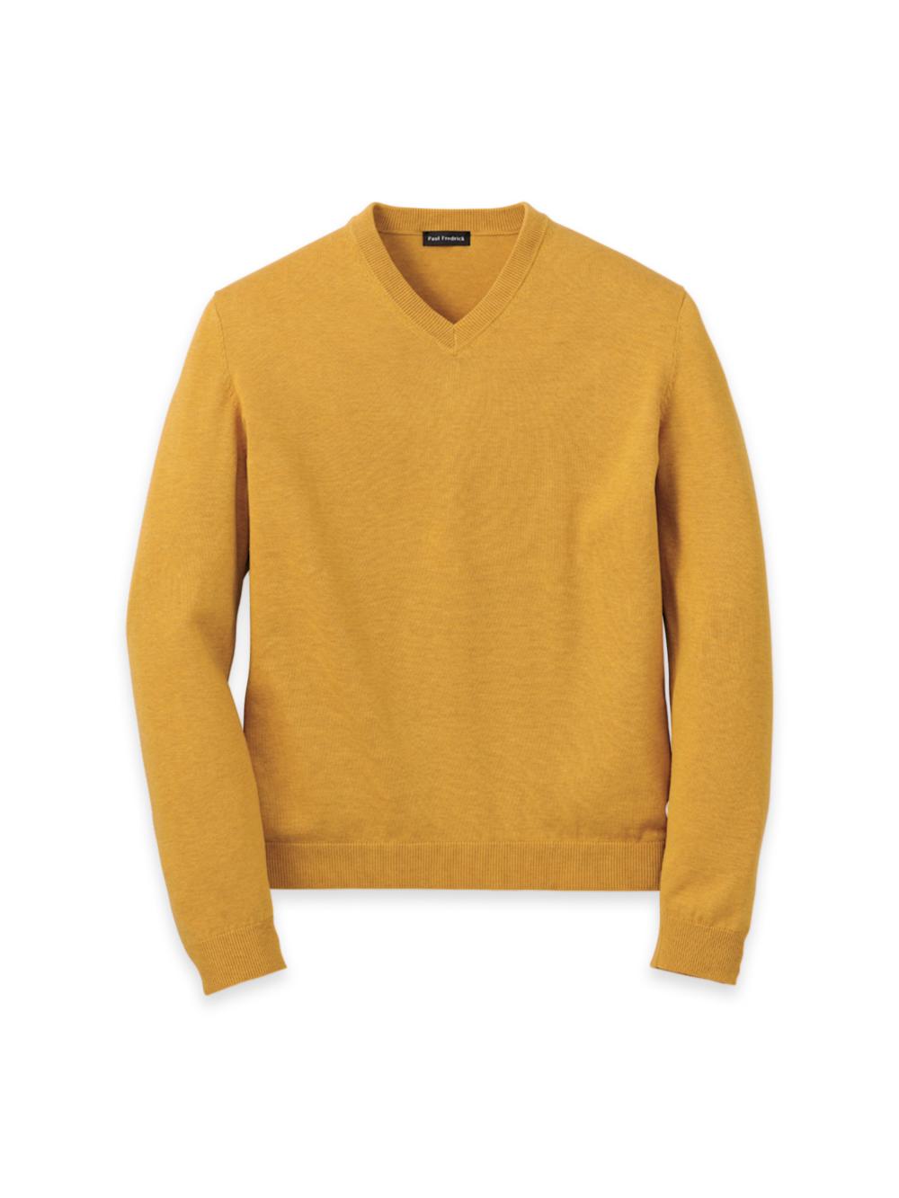 Supima Cotton V-neck Sweater - Mustard Product Image