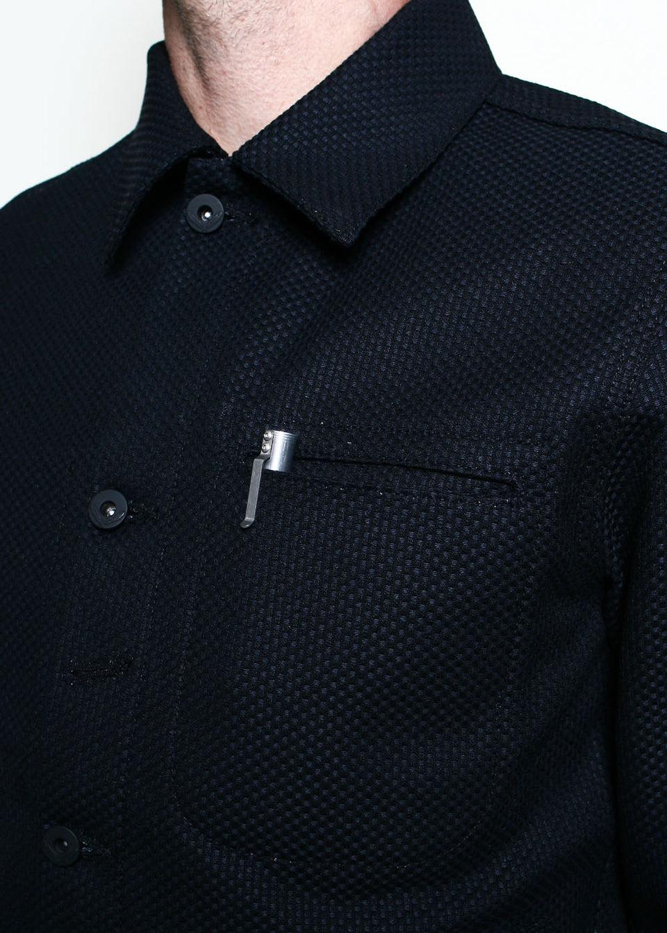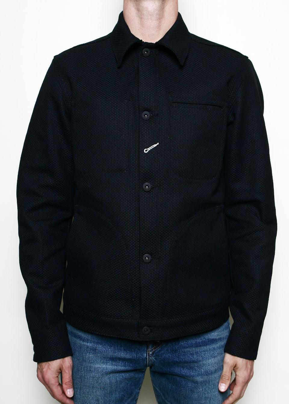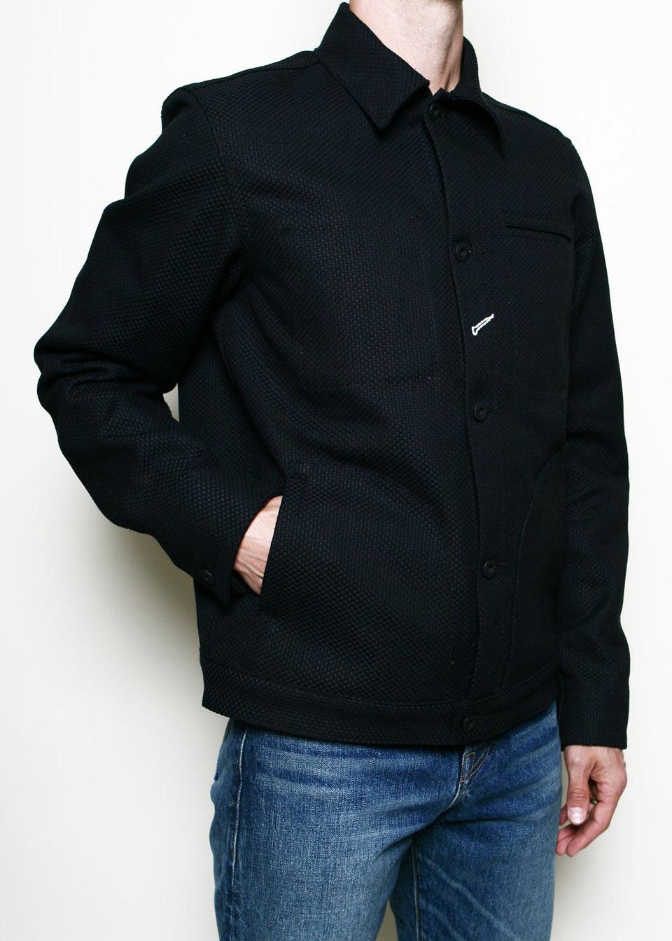 Pre-Order window is now closed. Estimated delivery for this jacket is end of June/early July. FIT // Slim Fit FABRIC // 15oz black sashiko from Japan – Our modern take on the classic denim jacket– Interior pockets clean finished w/ bias tape– Front hand-warmer style patch pockets– Chain-stitched seams– Branded leather