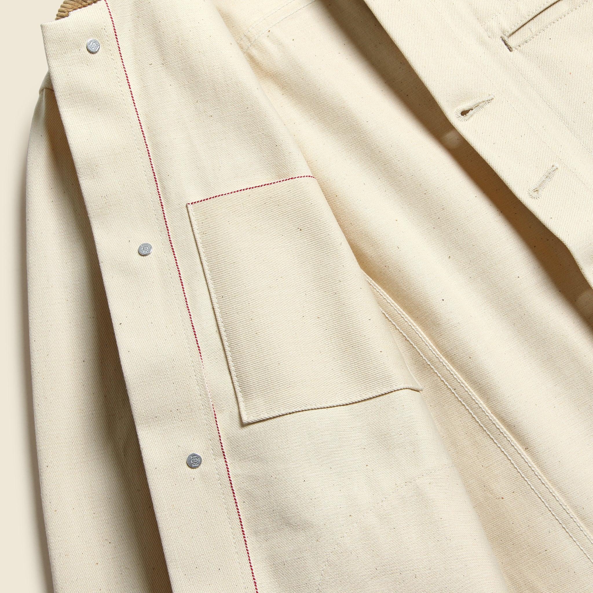 Designed and constructed in Los Angeles, this Supply Jacket from Rogue Territory features all the hallmarks of the original, but this time, in an all-new 14oz. Ecru selvedge denim from Japan that’ll earn plenty of character through wear and tear. Expertly crafted from top to bottom, this reliably durable year-round jacket is cut slim through the chest and shoulders & comes topped with contrast, fine-wale corduroy at the cuffs and collar for a classic finish.