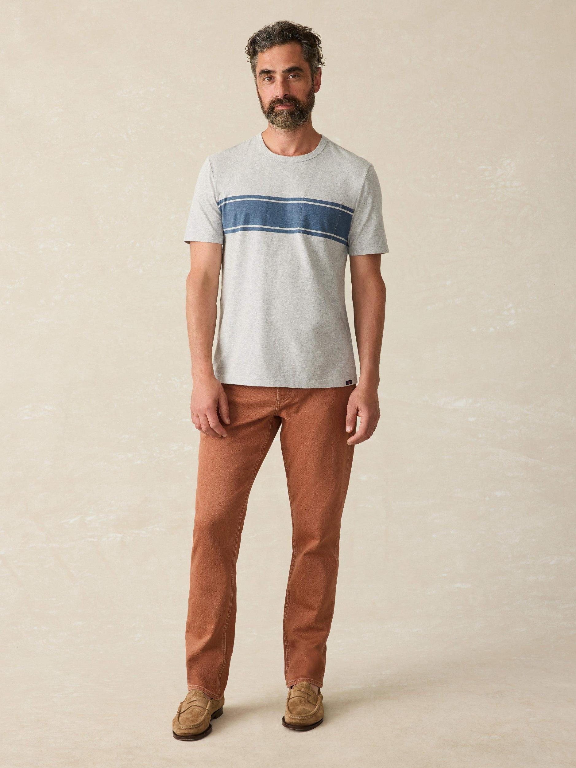 Inspired by iconic vintage T-shirts, our Sunwashed Tees are crafted in organic cotton that has been garment washed for a perfectly lived-in look and feel. Cut with a relaxed-but-tailored silhouette, this is a timeless wear-with-everything tee. Fit: Relaxed body with a straight fit from the chest to the hem. Straight sleeves. Detail: Self fabric bound collar. Chest pocket. Printed main label at interior back neck. Woven Sun & Waves label at wearer's left hem. Material: 100% Organic Cotton Model: Quetzal is 6'1 wearing size Medium Care: Turn inside out. Machine wash cold with like colors. Gentle cycle. Do not bleach. Tumble dry low. Remove promptly. Cool iron when needed. MKS2364-HGY
