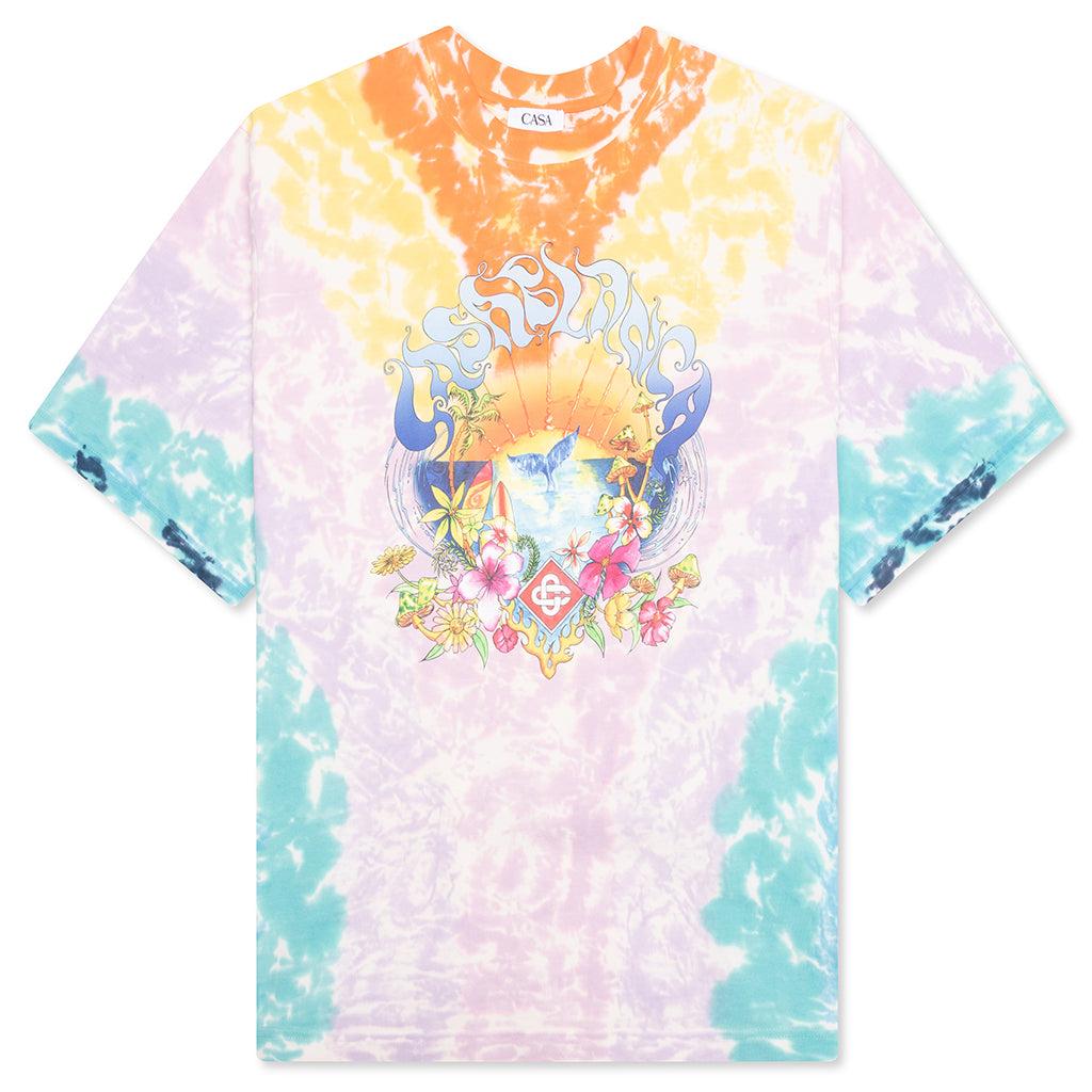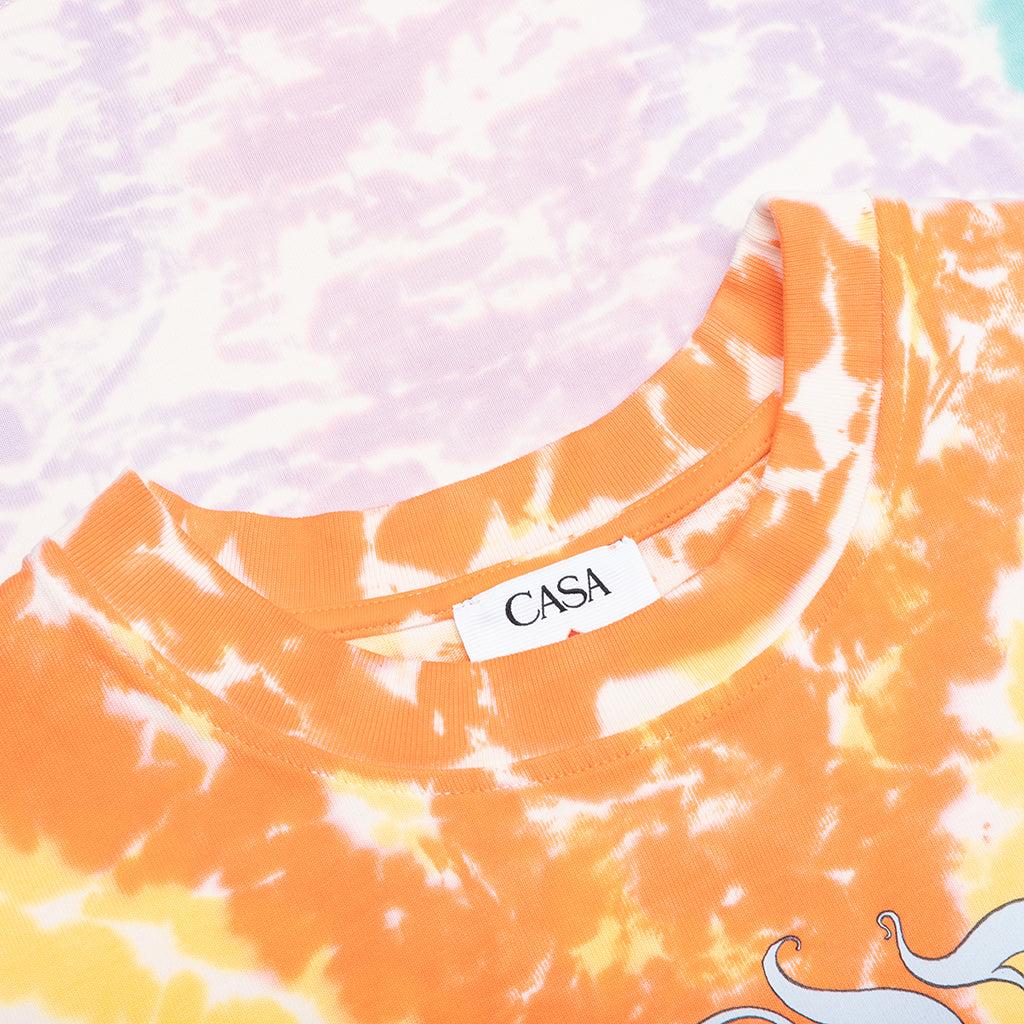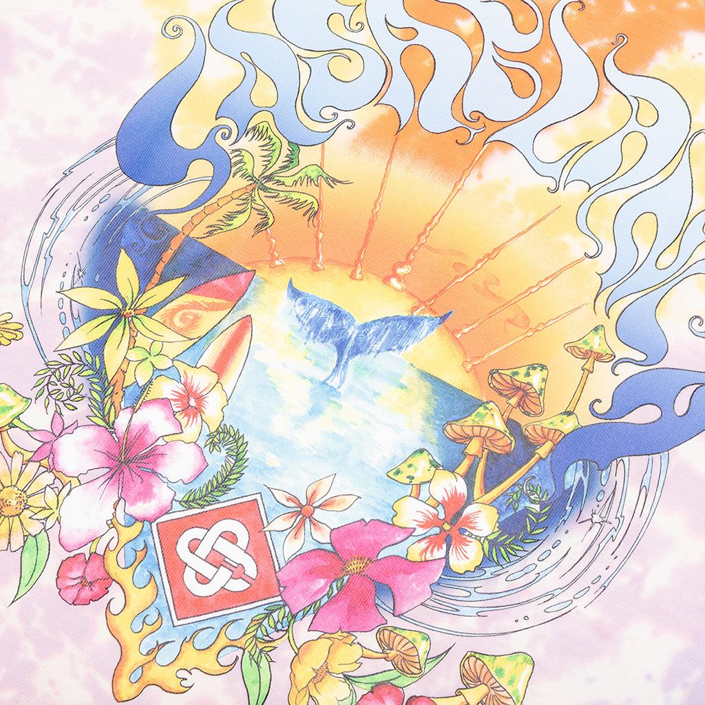 The Surf Trip Printed Oversized T-Shirt from Casablanca is a short-sleeve printed design crafted from organic cotton fabric. This garment features seasonal artwork inspired by vintage Malibu surf culture on a tie-dye backdrop. The look is completed with a classic crew neckline. 100% Organic Cotton Crew neckline Tie-dye pattern Screen-printed graphics Style No: MS25-JTS-027-01