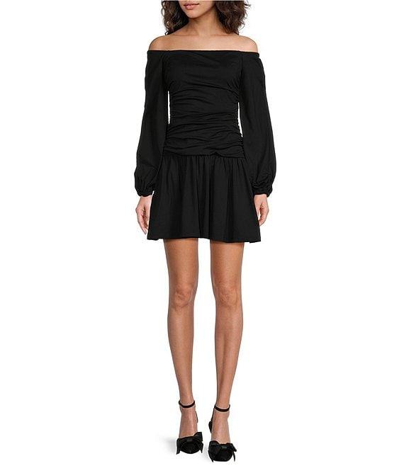 Susana Monaco Off-The-Shoulder Neck Long Sleeve Ruched Mini Dress
