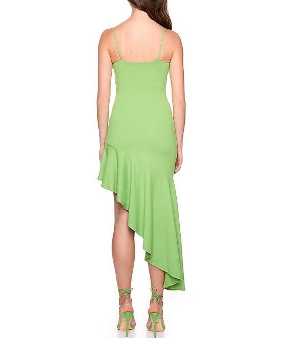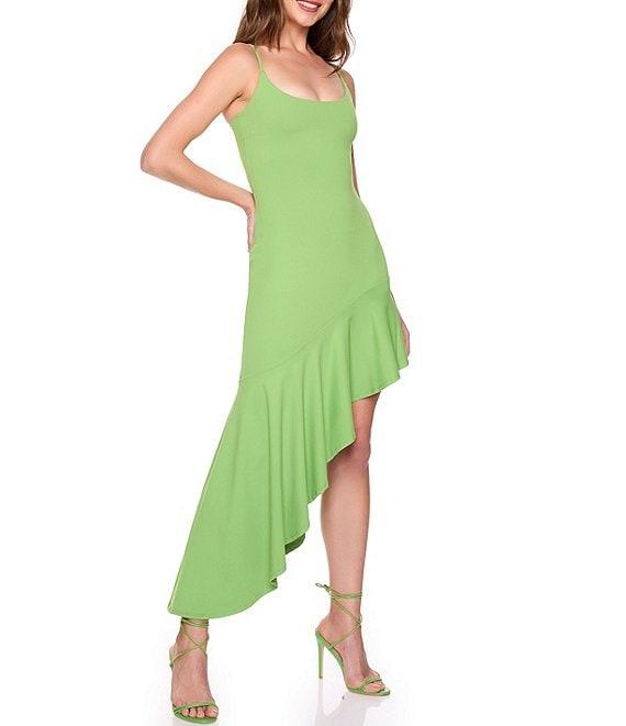 Susana Monaco Square Neckline Sleeveless Asymetric Ruffle Hem Midi Dress