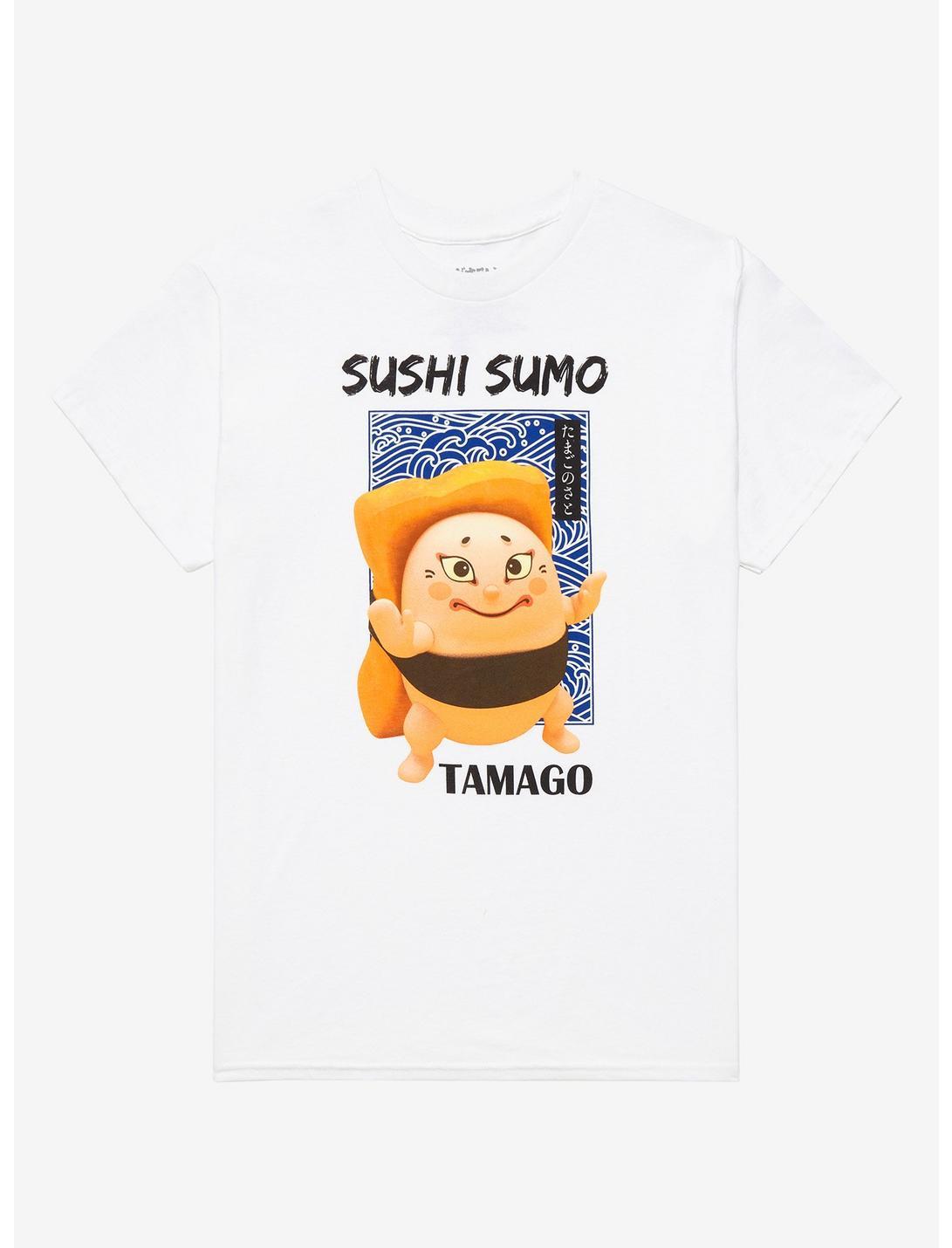 To the west and coming from a chicken's egg: Tamago! Rep your favorite competitor with this Sushi Sumo tee, featuring Tamago posed for victory. The fluffier egg always reigns surpreme.100% cottonWash cold; dry lowImportedListed in men's/unisex sizes