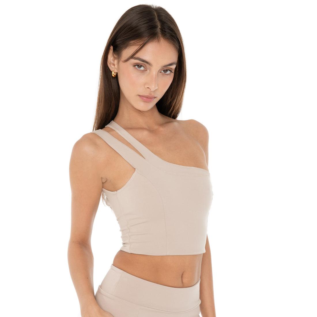 Expand your senses beyond symmetry. Susu is a double layered top with a strappy configuration in our ultra-soft active fabric. DETAILS 87% polyester, 13% spandex Ultra-soft and stretchy active fabric Double layered, asymmetrical straps Machine wash cold, lay flat to dry MODEL FIT Gayeanne is 5'9" and wearing the size
