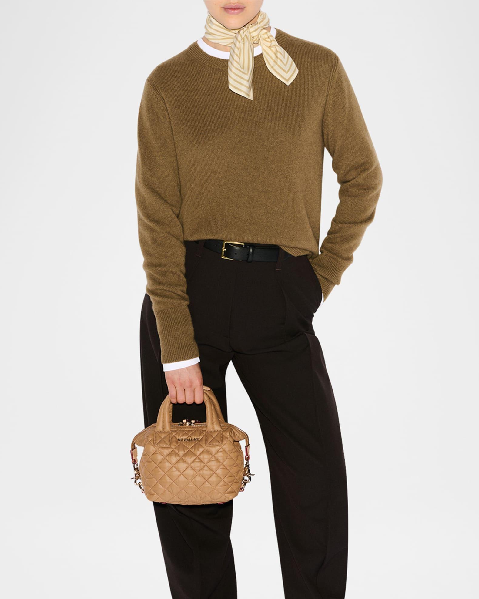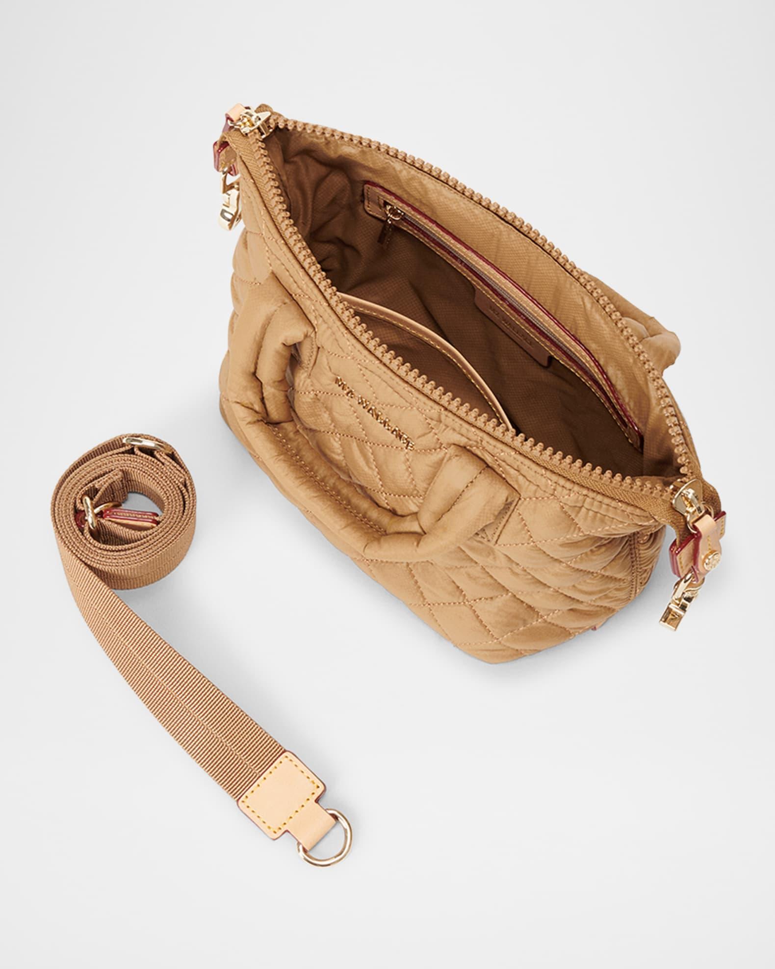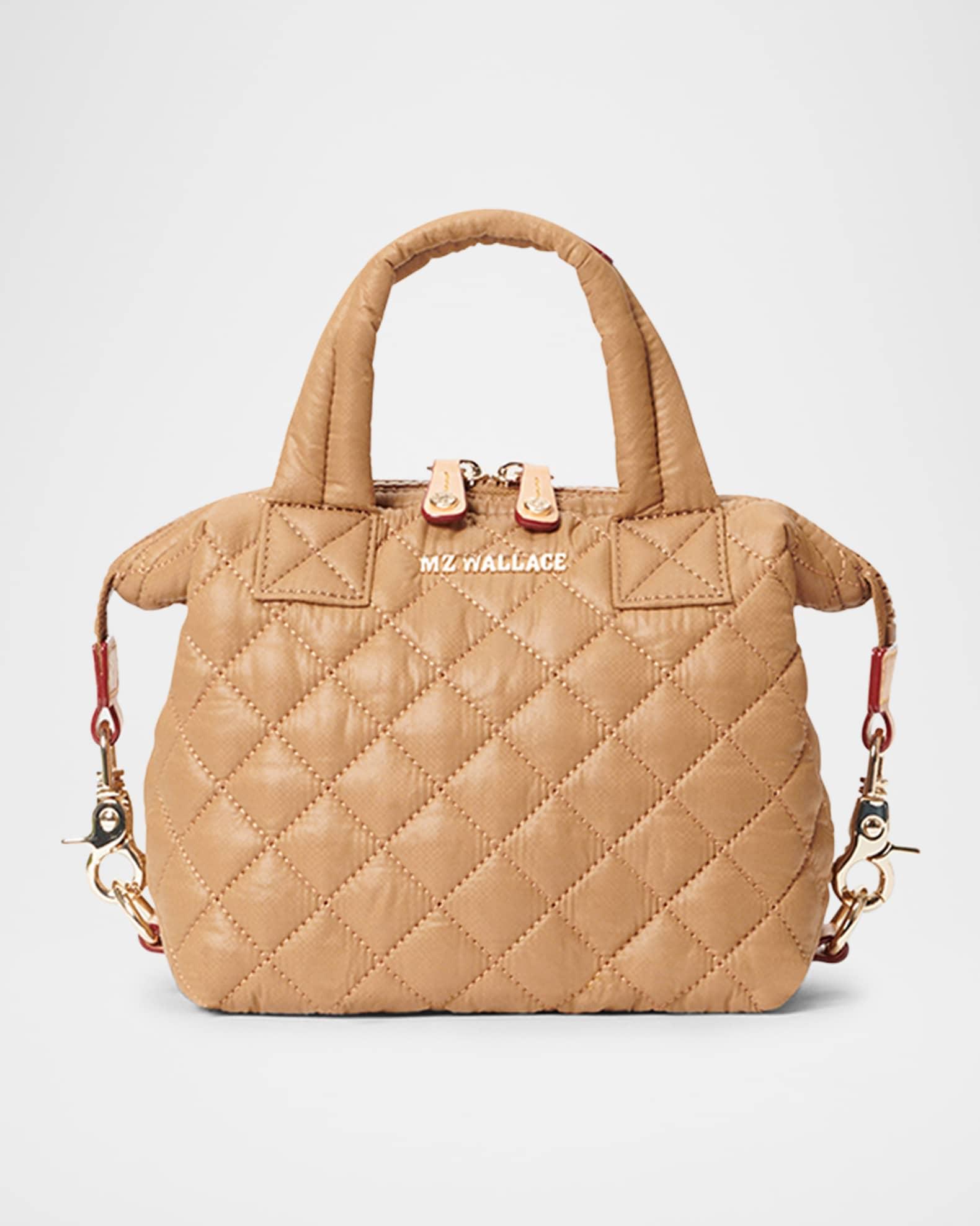 MZ WALLACE "Sutton" crossbody bag in quilted nylon and leather Top handles Detachable, adjustable crossbody strap Can be worn as a top handle or crossbody bag Two-way zip top closure; side lobster clasps Interior, one zip pocket and one slip pocket Approx. 6.7"H x 6.8"W x 4.7"D Hand wash Imported
