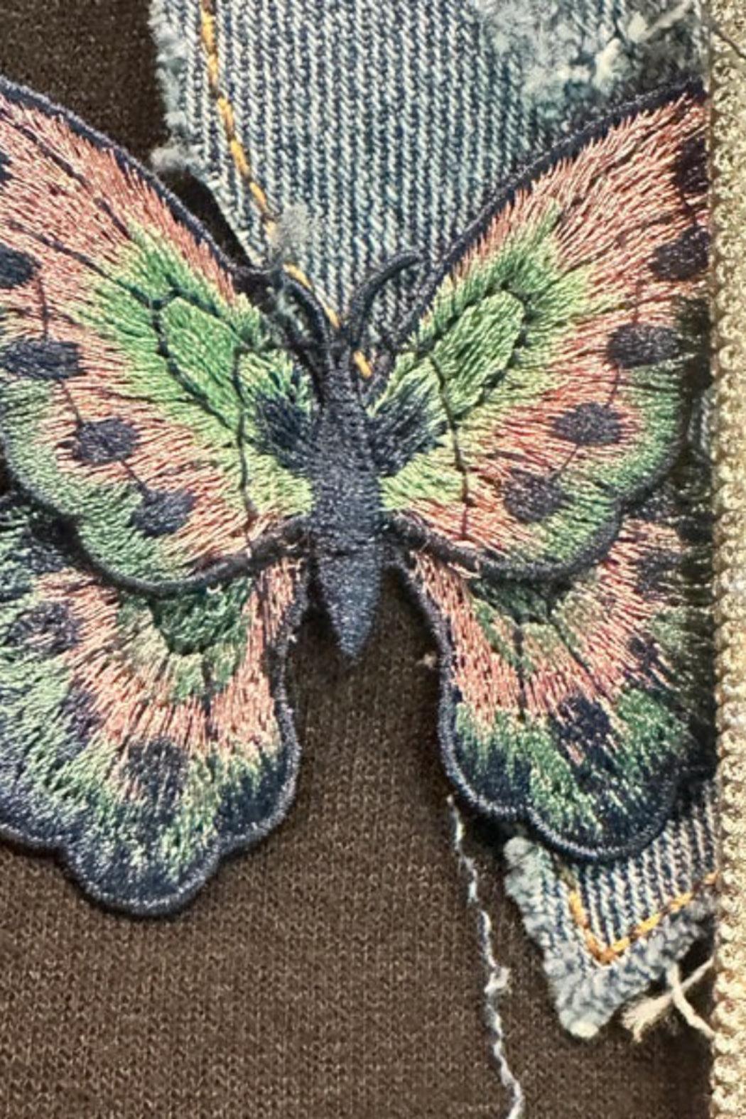 Cozy zip hoodie with vintage denim hearts & 3 dimensional butterflies, some with metallic thread! ---Crystal Rhinestone String has replaced the "regular" twine string! for a bit of added blingHand Wash & Hang DryFabric: Poly cotton fleeceWeight: 2 lb (0.91 kg)Dimensions: 18 x 14 x 2 in (45.7 x 35.6 x 5.1 cm)