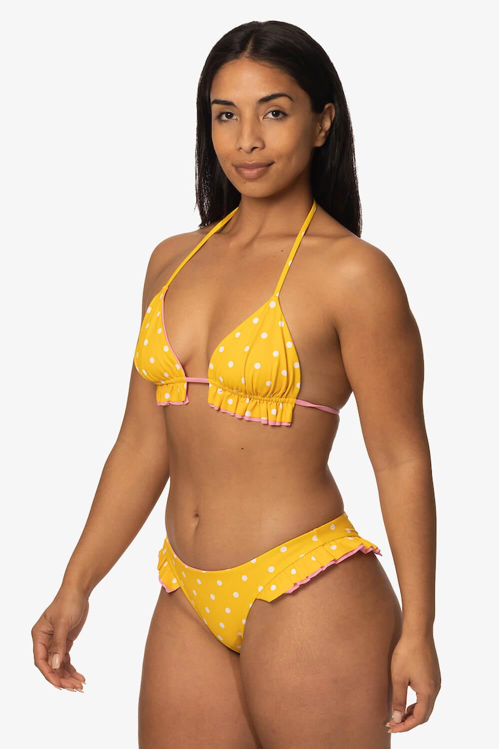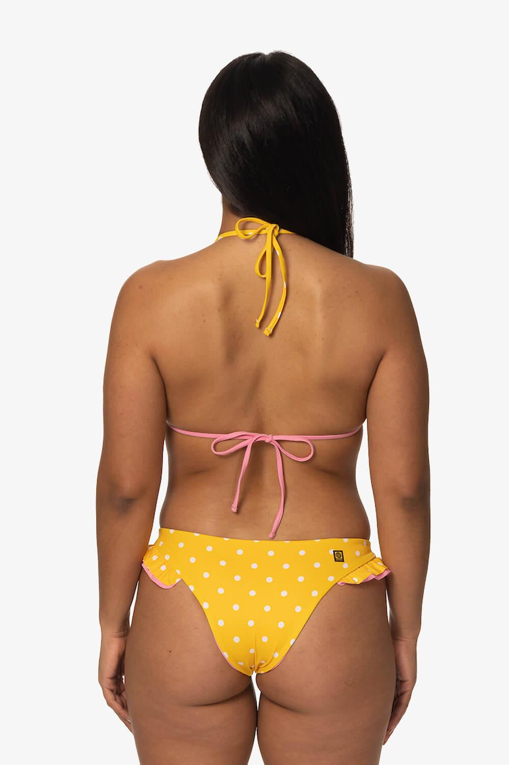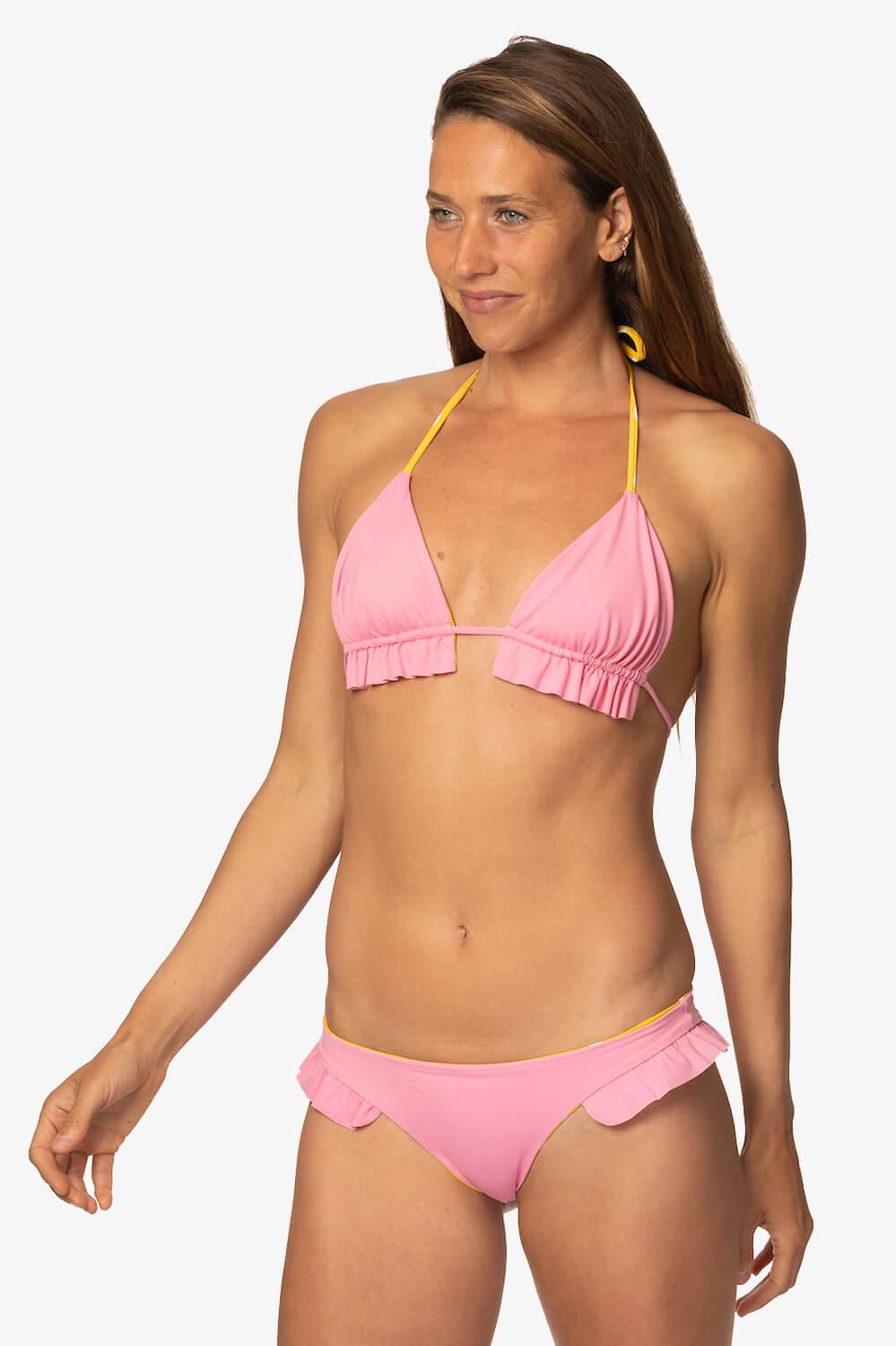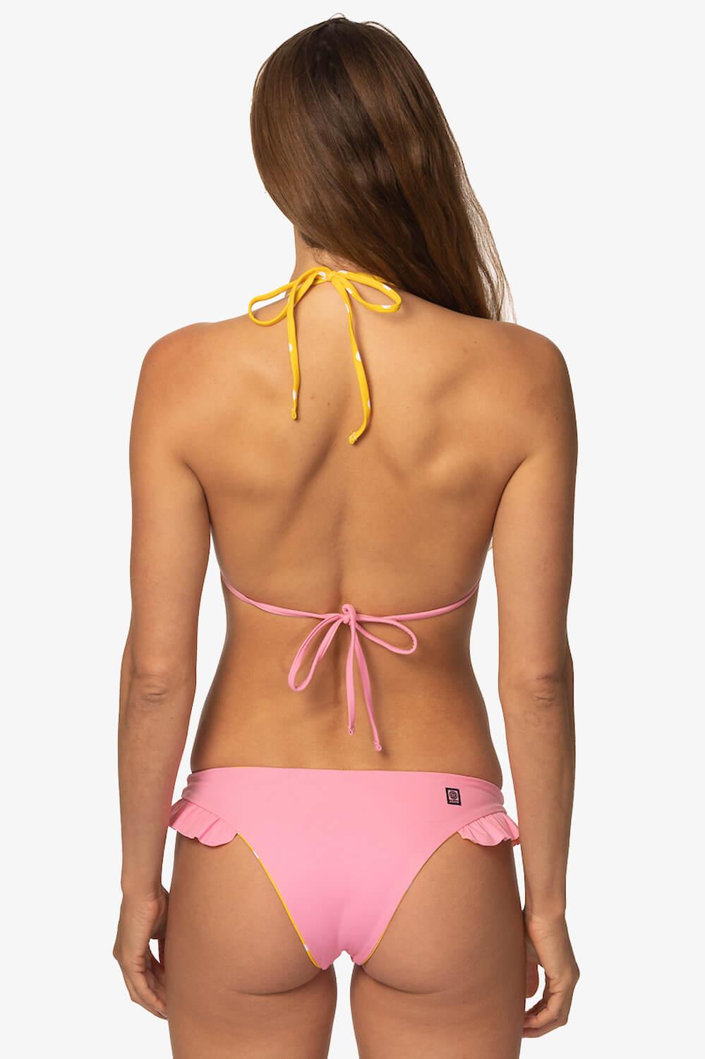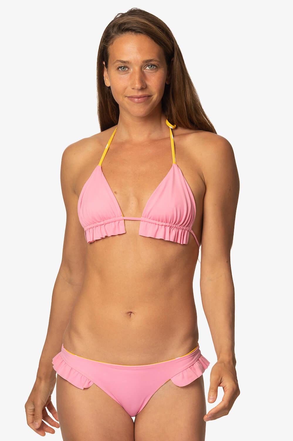 What better way to ruffle some feathers than with a ruffled bikini bottom? The Swamis bikini bottom is the perfect medium-coverage bikini bottom. These bikini bottoms not only have the perfect ruffle but are also reversible. You can wear these bikini bottoms all summer long. You'll for sure be turning heads, in bikini bottoms, so go charge some and feel good doing so. Features: Good for: Surfing, paddling, ocean activities, lifestyle JOLYN x Tia Blanco Reversible Medium Coverage (3) Medium Impact (3) Lined for maximum privacy Tagless for maximum comfort Chlorine Resistant True to size Fabric Composition: Recycled Sea-Flex fabric Made out of recycled fishing nets and other discarded nylon UPF 50+ Shell: 78% Recycled Nylon 22% Elastane Liner: 78% Recycled Nylon 22% Elastane Care Instructions: Hand wash cold Hang dry Do not iron, dry clean or bleach