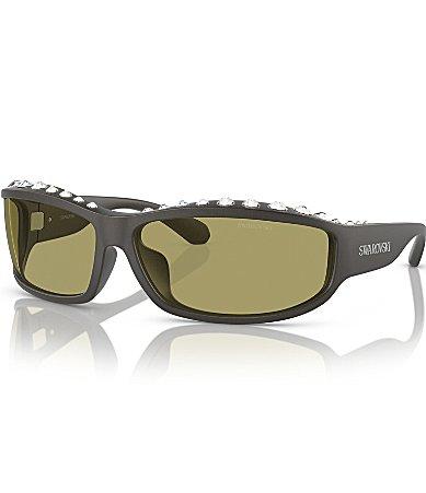 Swarovski Womens SK6009 73mm Rectangle Jeweled Statement Sunglasses
