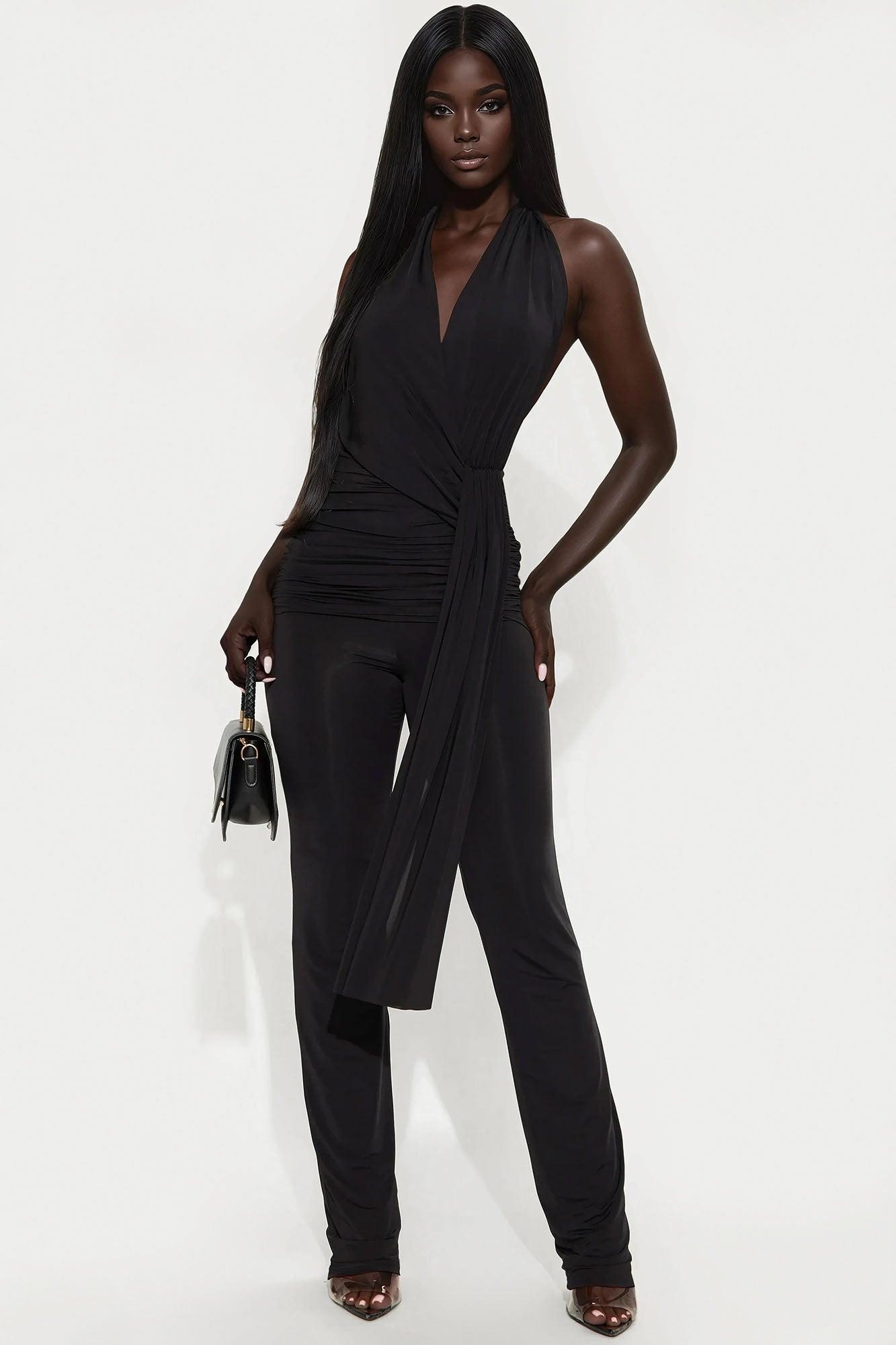 Swaying Palms Wide Leg Jumpsuit - Black