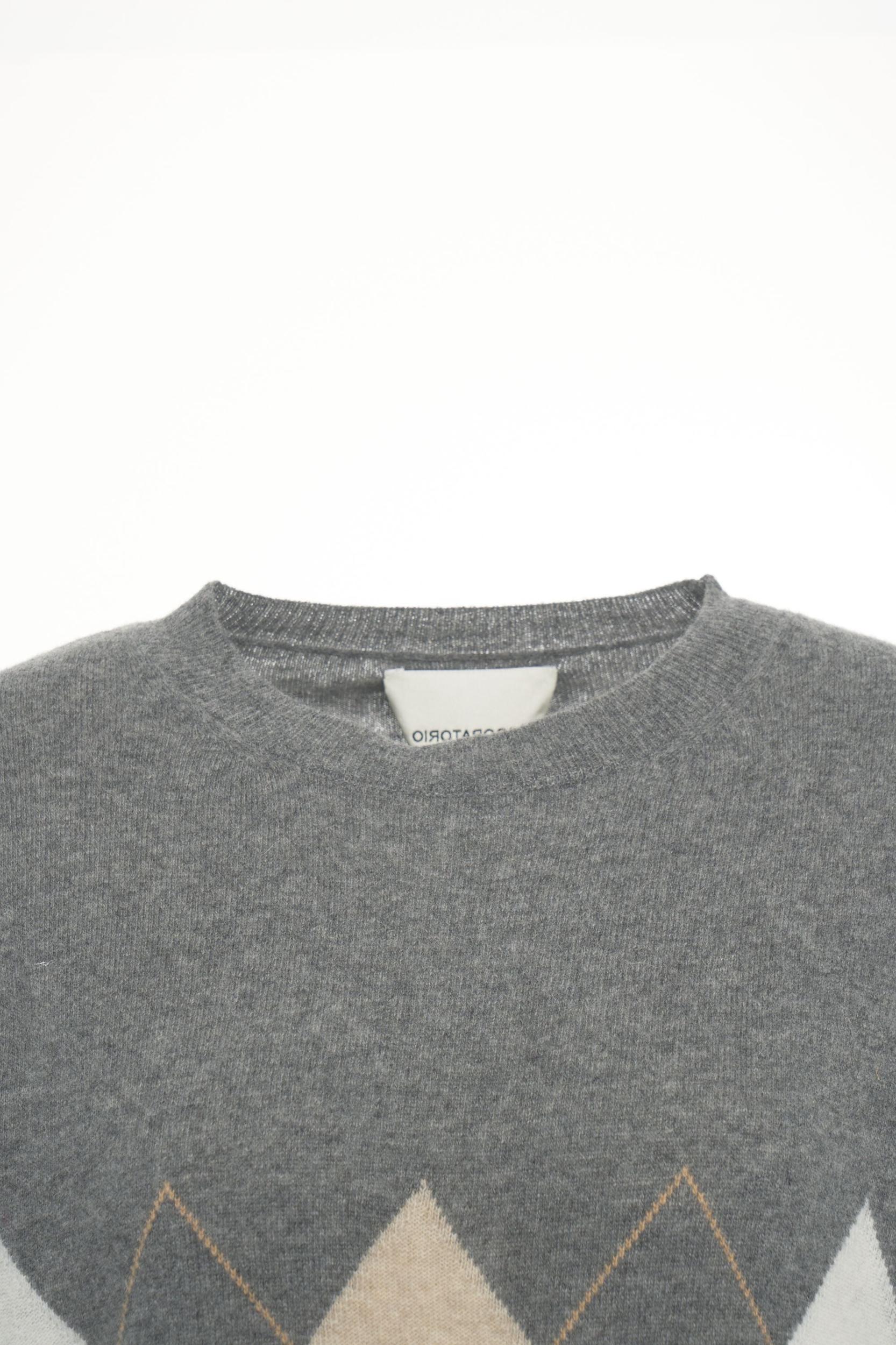 This pullover from Jei O features a classic crew neck and long sleeves. The distinctive diamond pattern on the front gives the knit model a timeless aesthetic. Ribbed cuffs and a ribbed hem ensure a comfortable fit. Made in Italy, this pullover combines traditional craftsmanship with modern design.SweaterCrew neckLong sleevesRibbed cuffsRibbed hemWoolArgyle patternMade in Italy