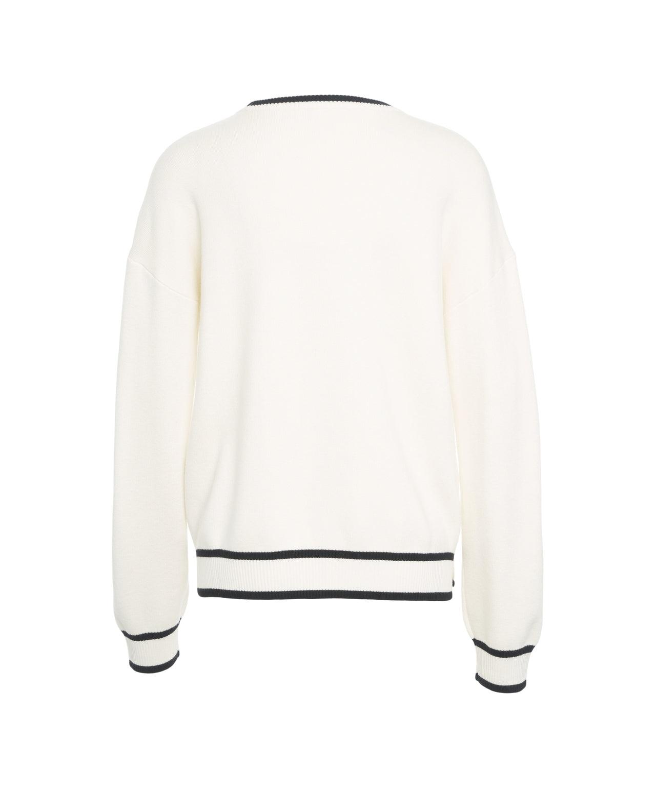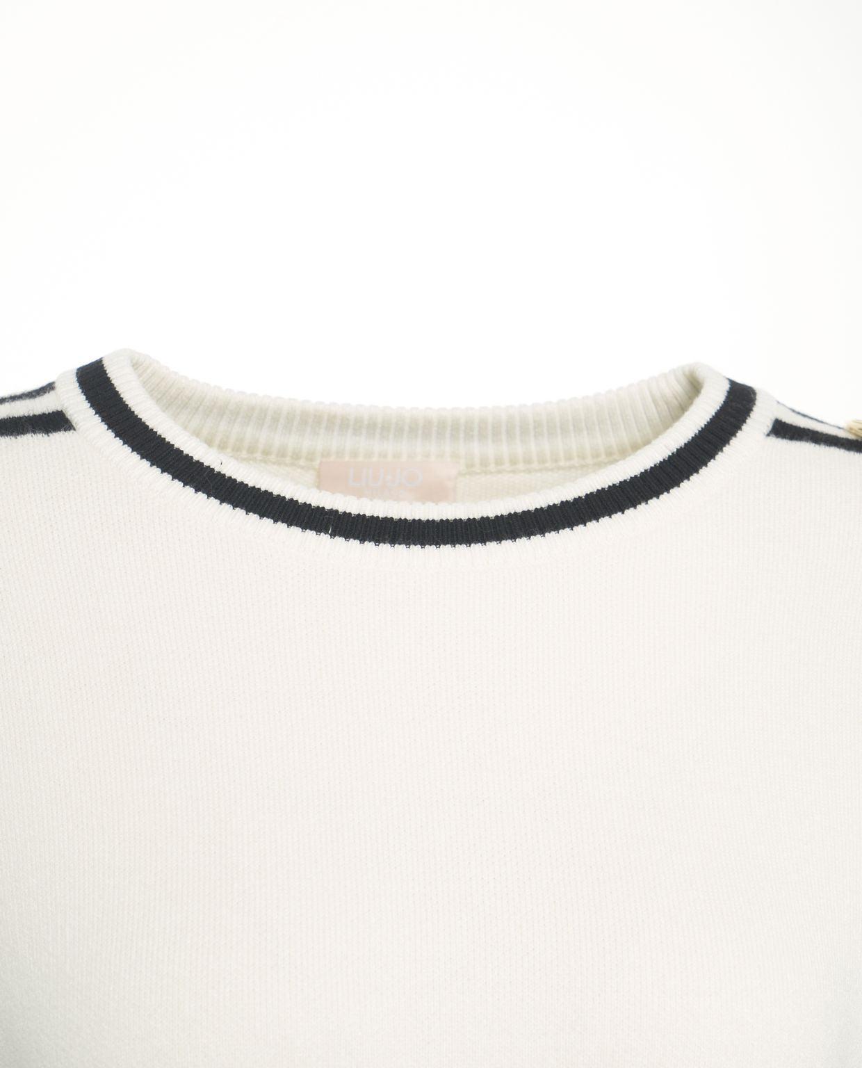 This sporty pullover is characterized by its classic cut and striking contrast stripes on the round neck, cuffs, and hem. Decorative buttons on the shoulders add an elegant touch to the design. The cuffs are also adorned with a subtle logo lettering that highlights the brand identity. A versatile garment for casual looks.LIU JO SPORTPulloverDecorative buttonsCrew neckLong sleevesRibbed collarRibbed cuffs and hemLogo lettering