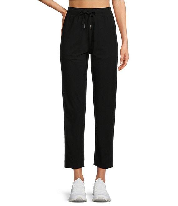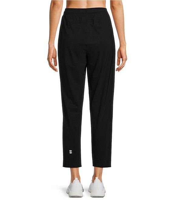 From Sweaty Betty, these trousers feature: Athletic straight leg silhouette High rise waistline Elastic waistband Side seam pockets Straight hemline Ankle length Drawstring closure Pull-on construction Approx. 25" inseam Polyamide, elastane Machine wash on warm gentle cycle, wash with similar colors and fabrications, promptly remove from wash, lay flat to dry and reshape. Imported.