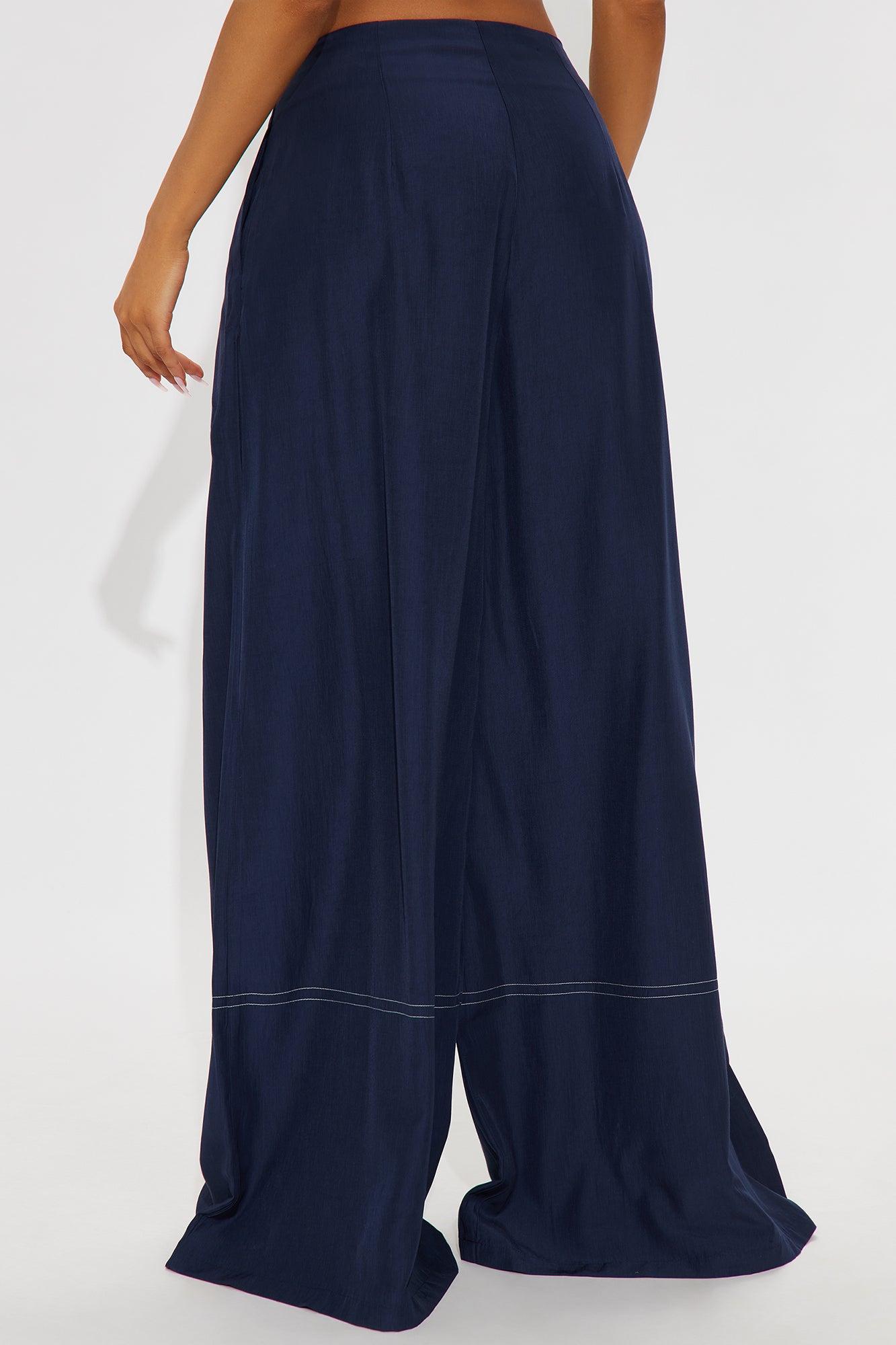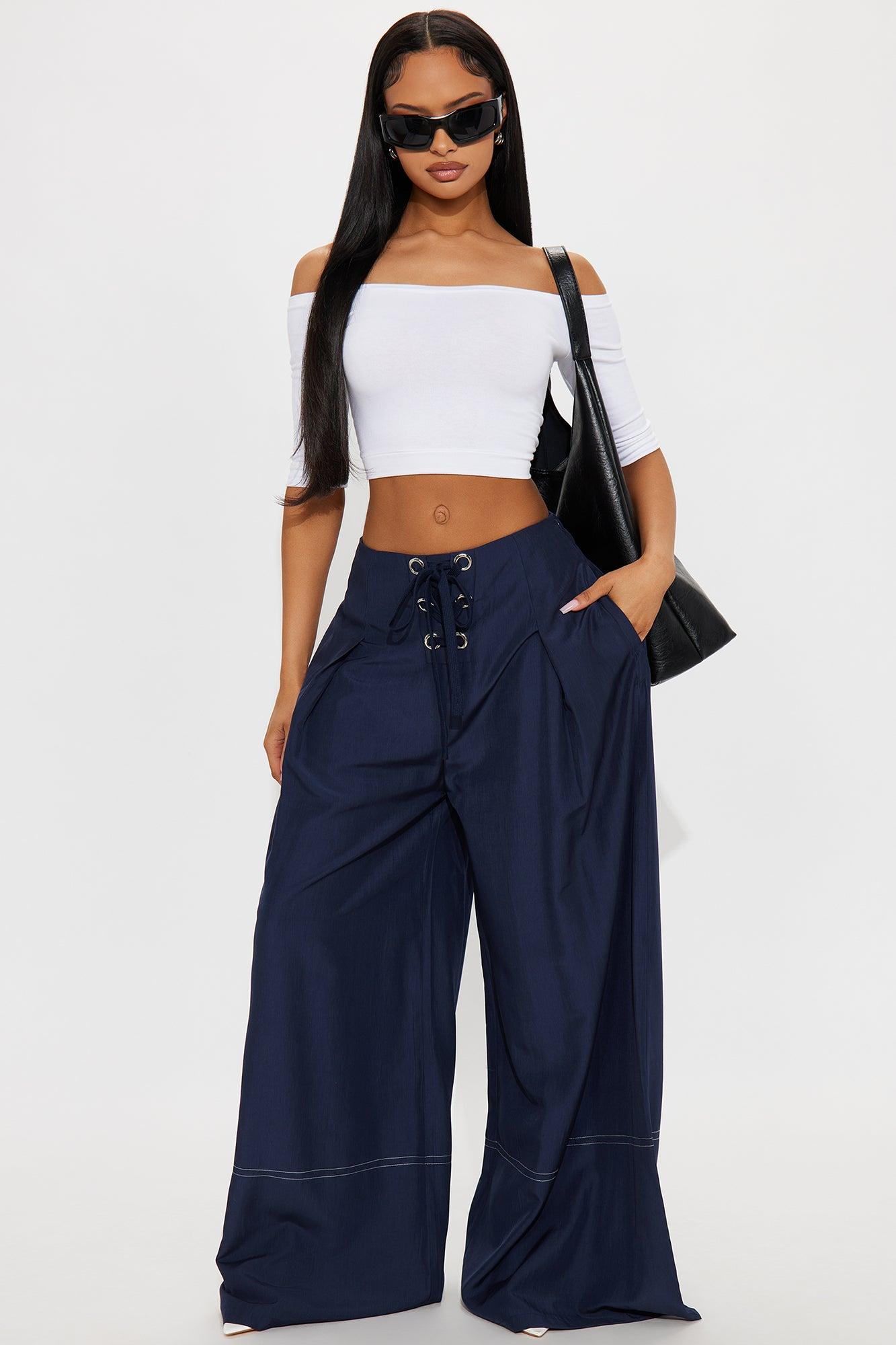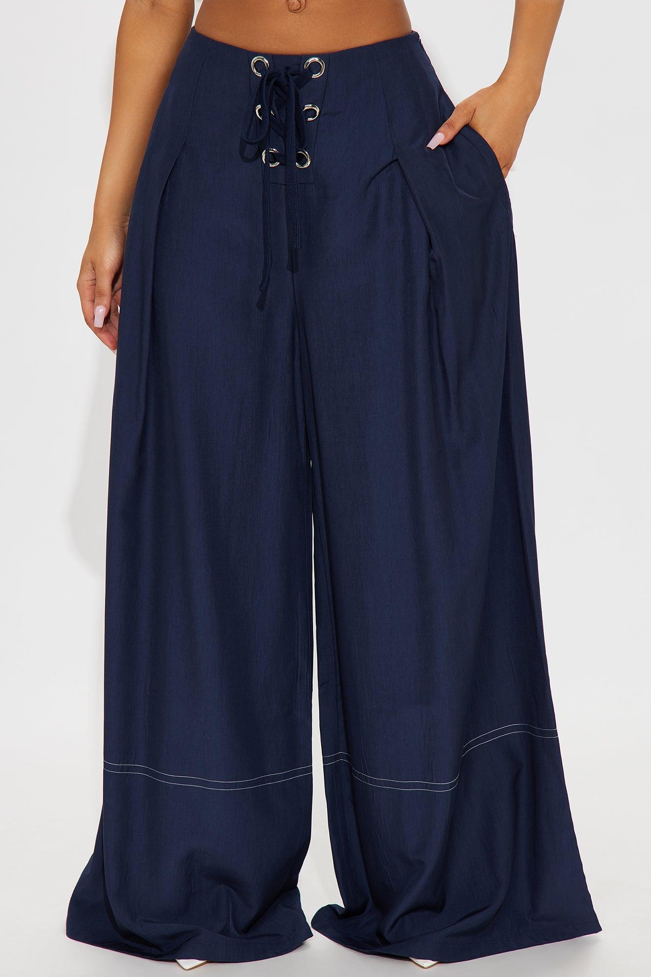Sweet And Simple Lace Up Wide Leg Pant - Navy
