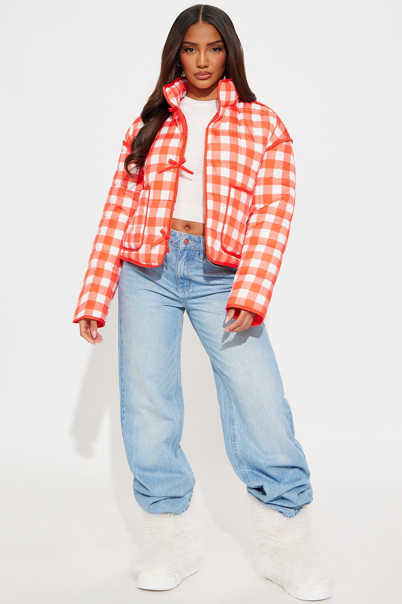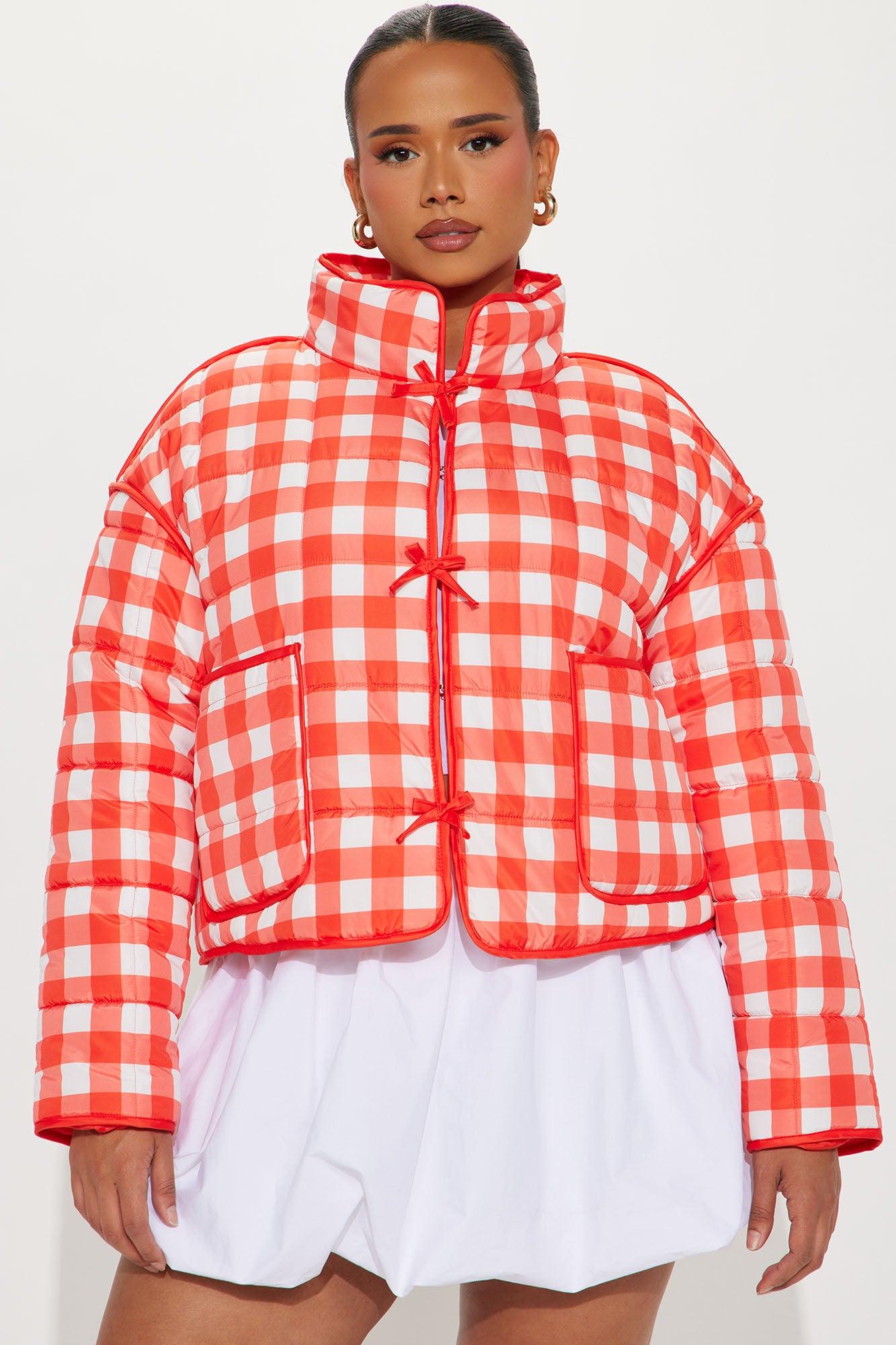 Available In Black/White And Red/White. Jacket Collar Long Sleeve Polyester Quilted Gingham Print Hook & Eye Closure Functional Pockets Fully Lined Disclaimer: Plaid Placement Will Vary Shell: 100% Polyester Lining: 100% Polyester Filling: 100% Polyester California Proposition 65WARNING: Cancer and Reproductive Harm - www.P65Warnings.ca.gov.