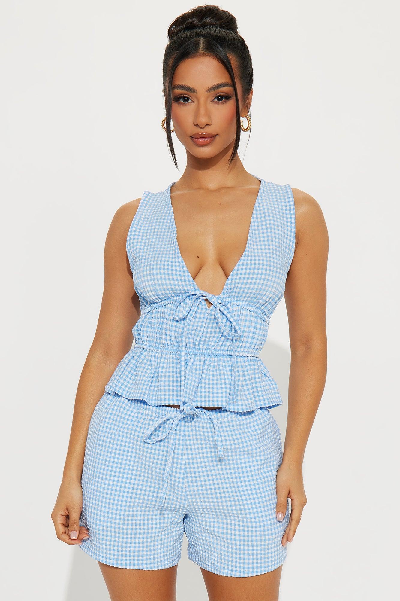 Sweet Darling Gingham Short Set - Blue
