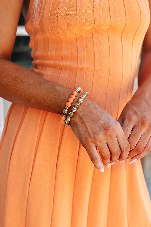- This stackable duo is a sweet style selection! - Two stretchy bracelets featuring shimmering gold colored beads as well as orange hued beads
