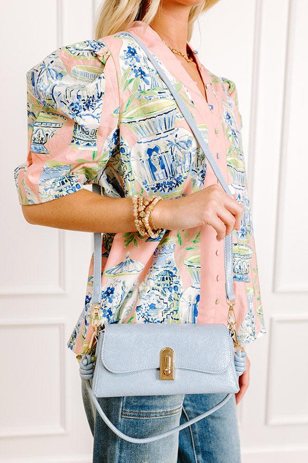 - This chic purse is a must-have accessory for every trendsetter's wardrobe. Its coiled strap accents and unique twist closure add standout details to elevate any outfit. - Faux leather material with a subtle texture - Gold toned metal hardware - Flap and twist closure as well as interior zip closure - A detachable faux leather shoulder strap with coil details on each side - A detachable, adjustable length crossbody strap - A fully lined interior with a zippered pocket