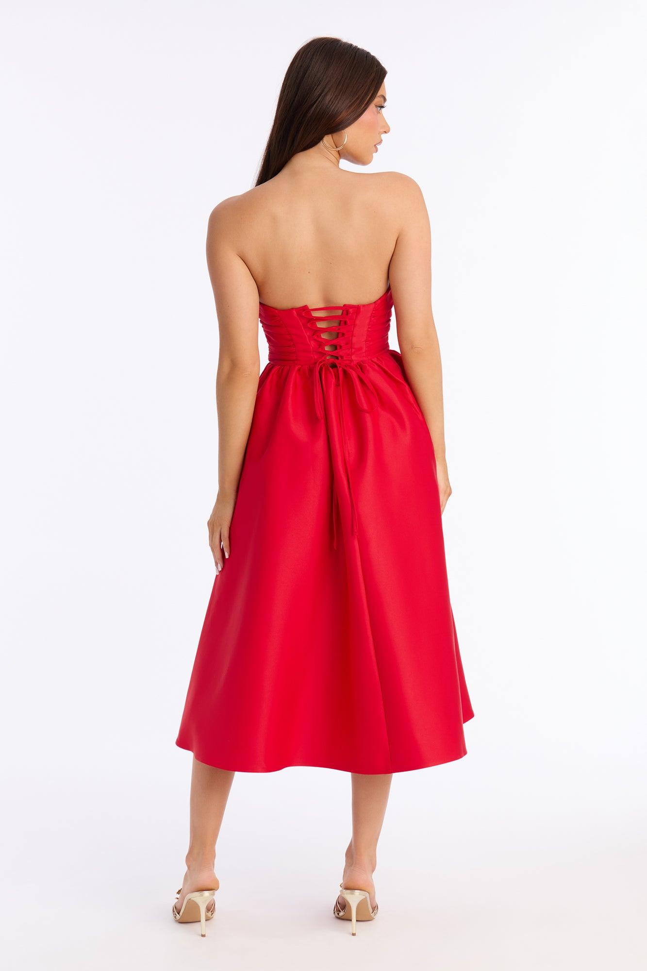 Sweet Like Me Taffeta Midi Dress - Red Female