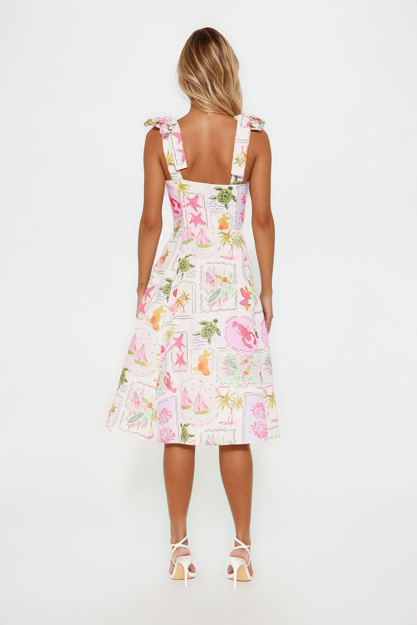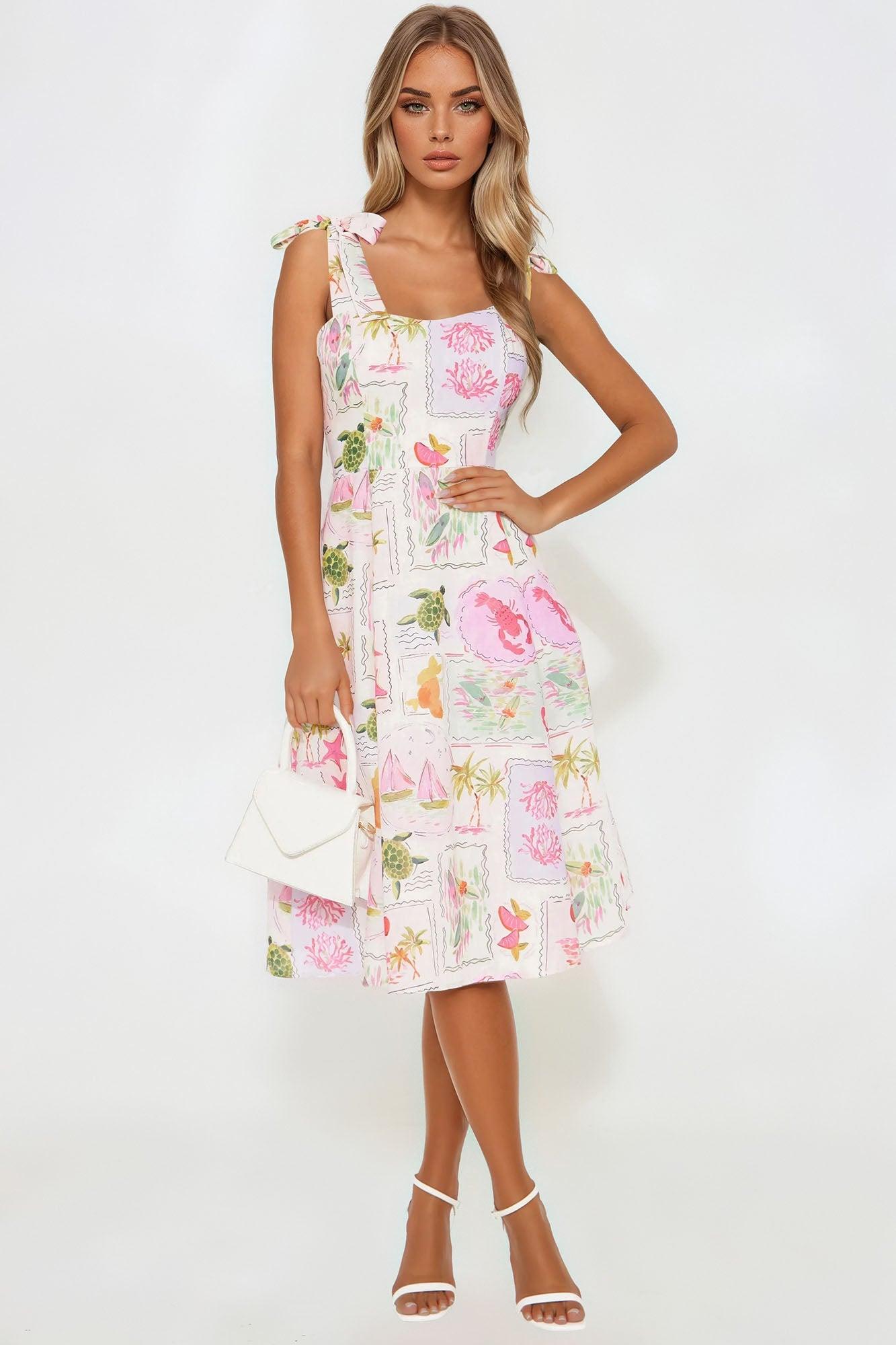 Sweet Paradise Linen Midi Dress - Pink/combo