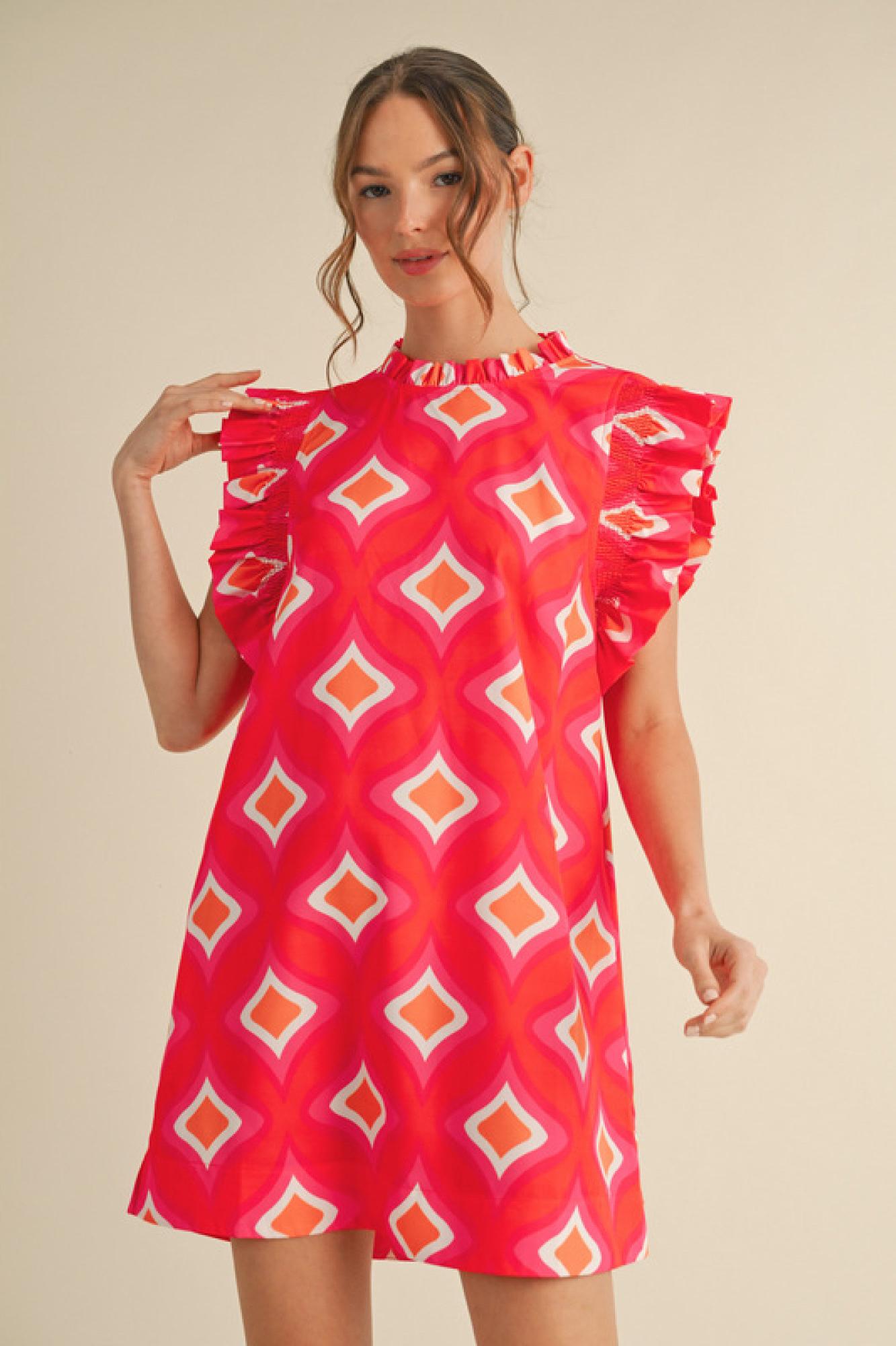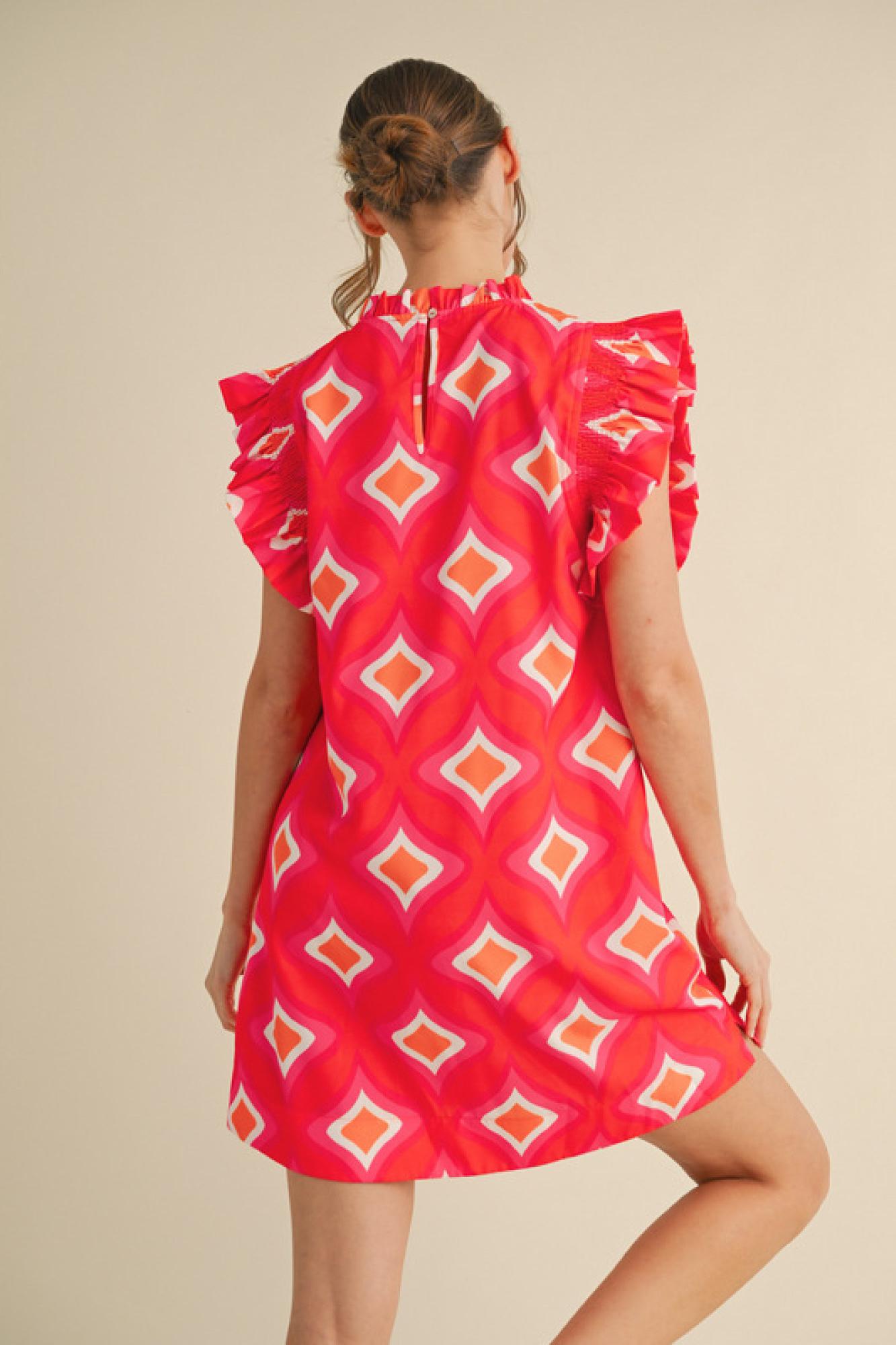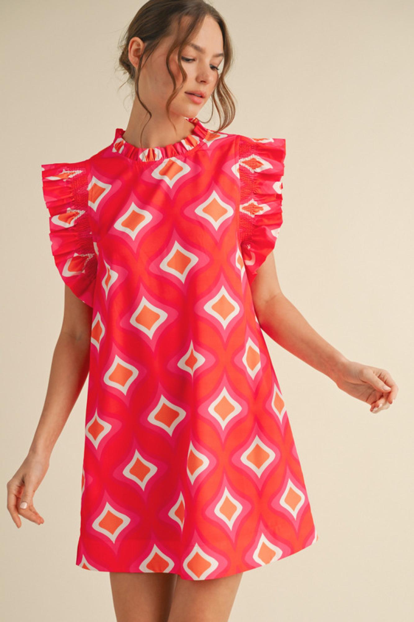 Step into timeless charm with The Sweet Pea Era Dress, a vintage-inspired printed dress designed with delicate frill accents and romantic touches. Featuring a mock neckline with soft frill detailing and smocked ruffle cap sleeves, this dress blends nostalgic elegance with everyday ease.