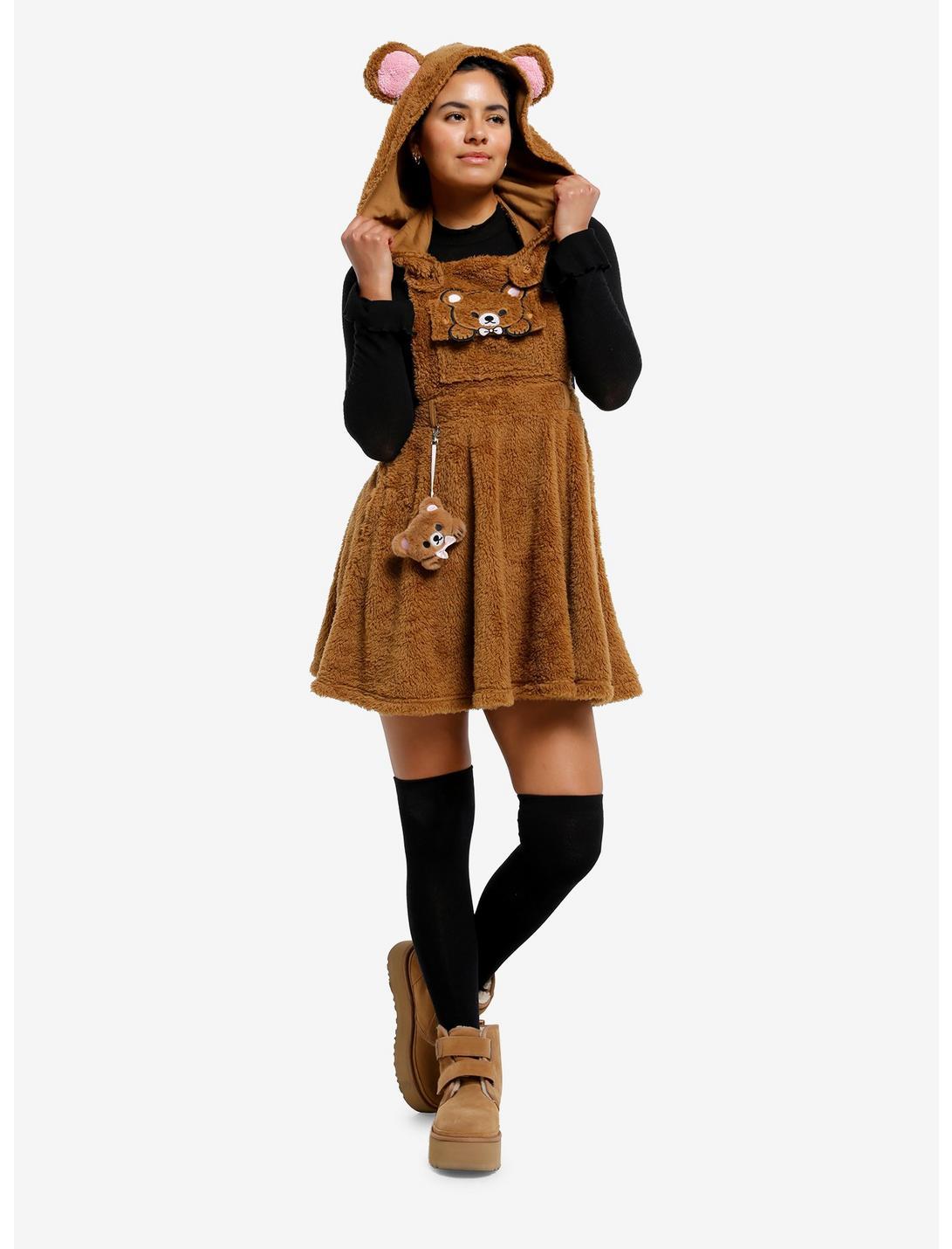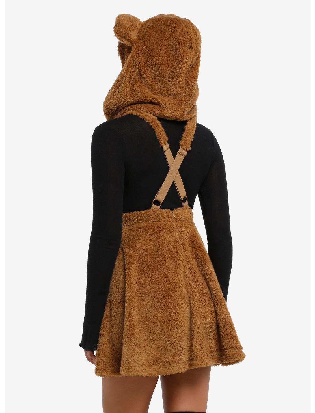 Dress up in a bear-y cute skirtall right now! This sherpa bear-inspired skirtall has a detachable hood with bear ears, a bear knit on the front bib pocket, and a plush bear charm. Pockets and adjustable straps.100% polyesterWash cold; dry flatLength: 27"ImportedListed in junior sizesModel is 5'9"Model wears size Small