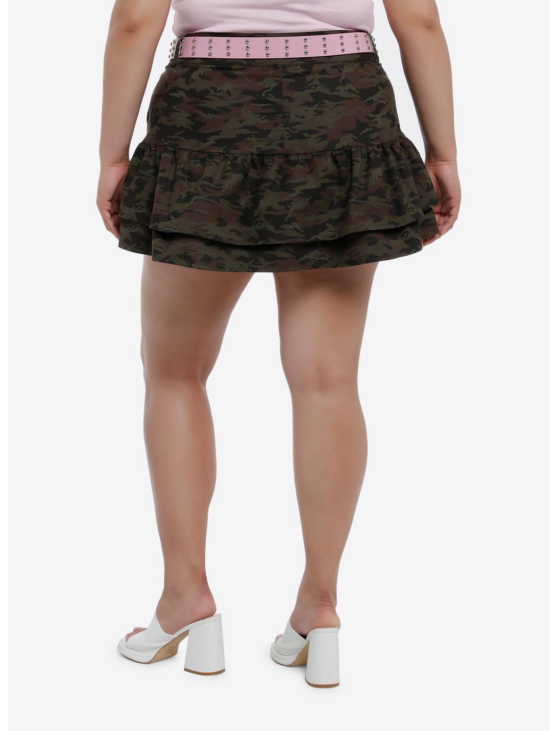 Sweet Society Green Camo Ruffle Belted Mini Skirt Plus Size