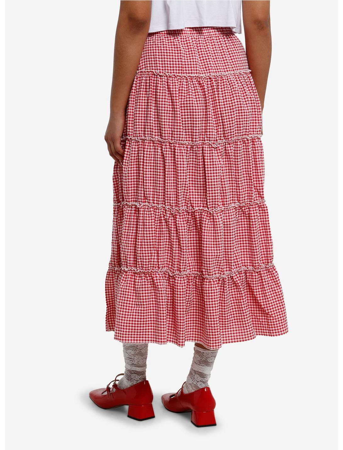 Sweet Society Red & White Gingham Tiered Midi Skirt