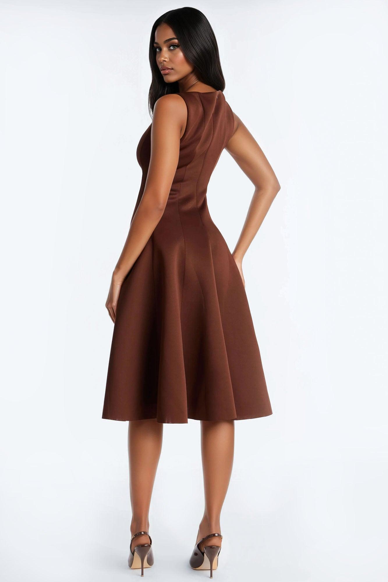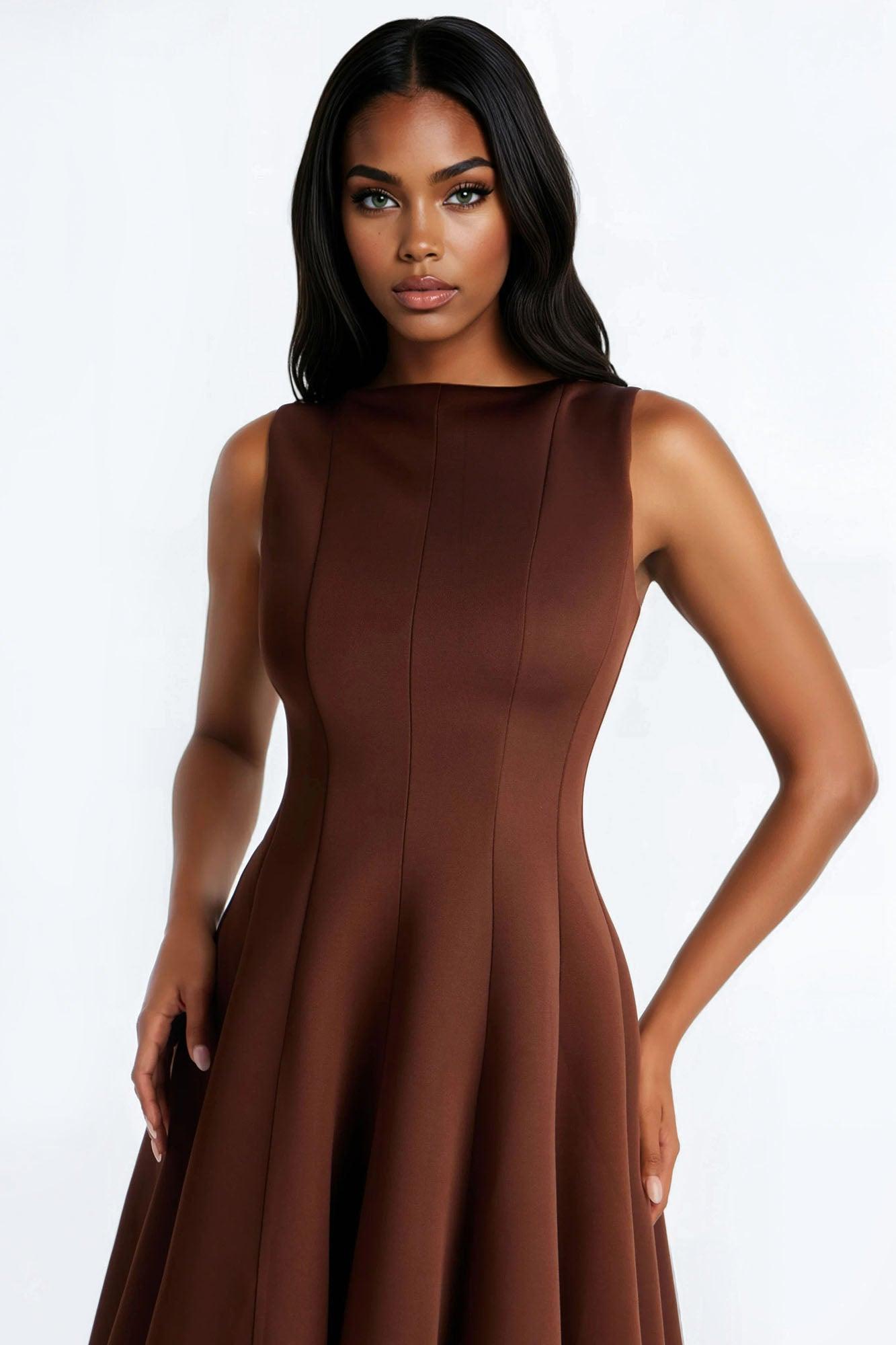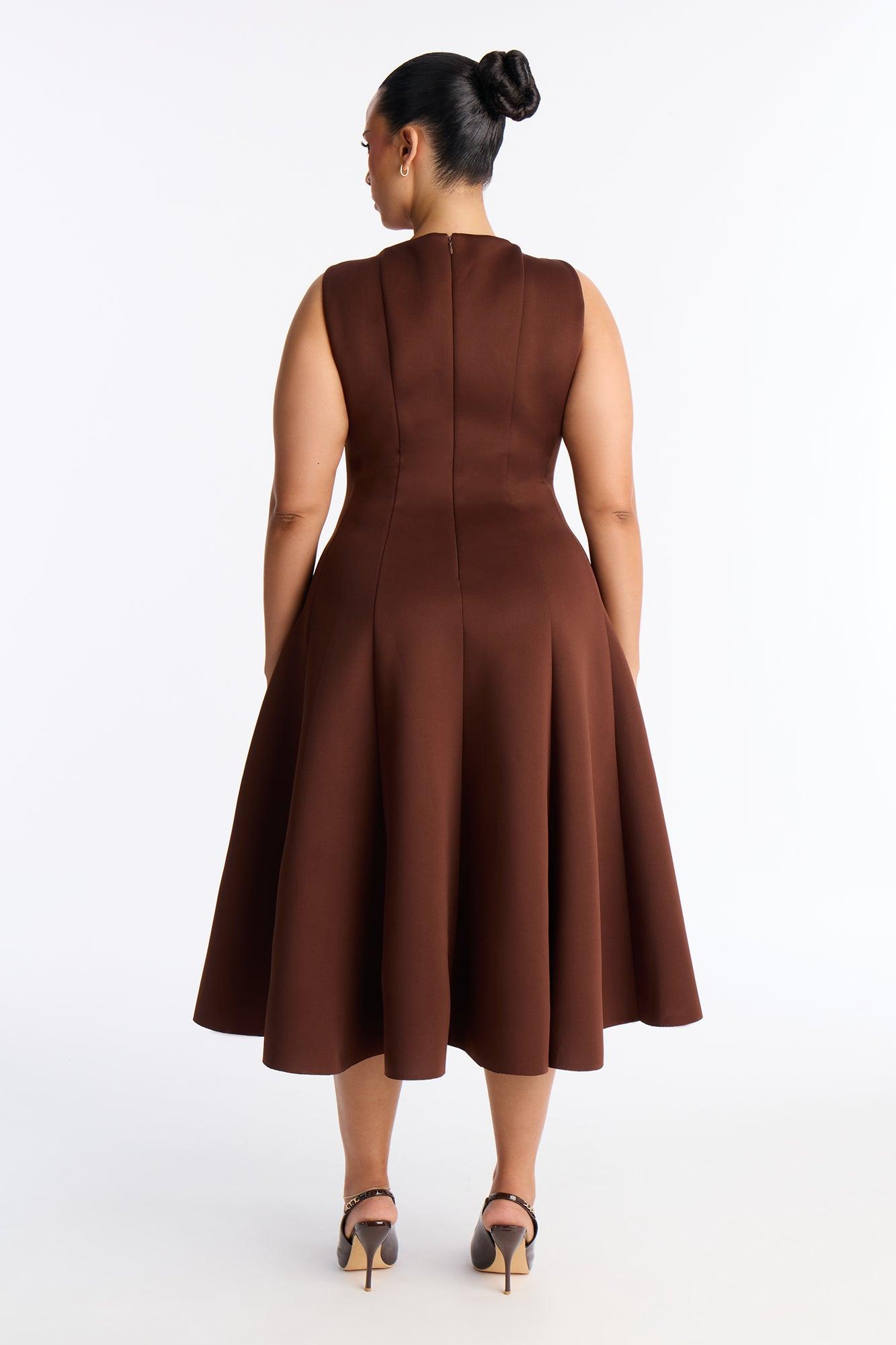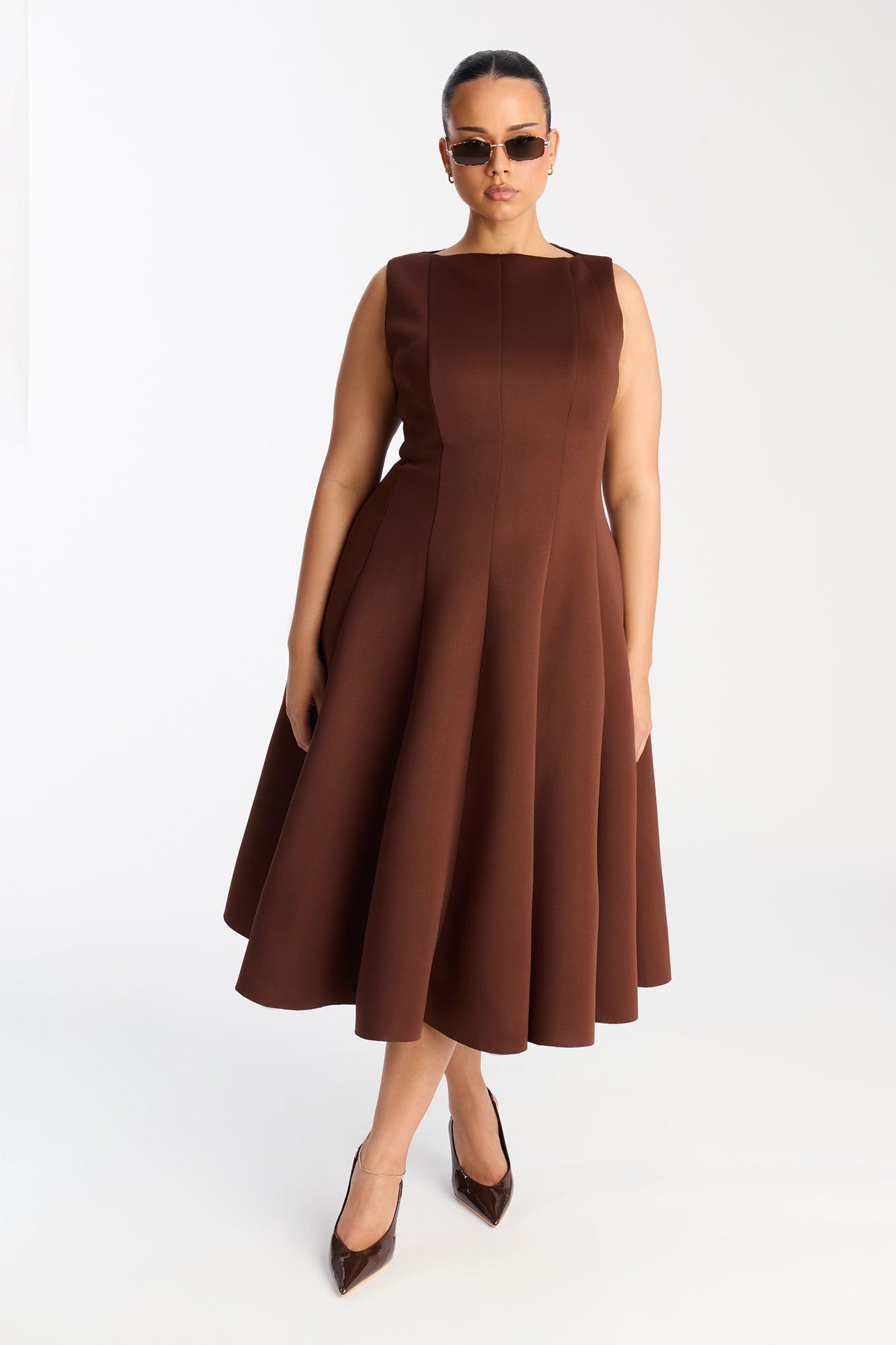Sweet Sunday Pleated Midi Dress - Chocolate Female